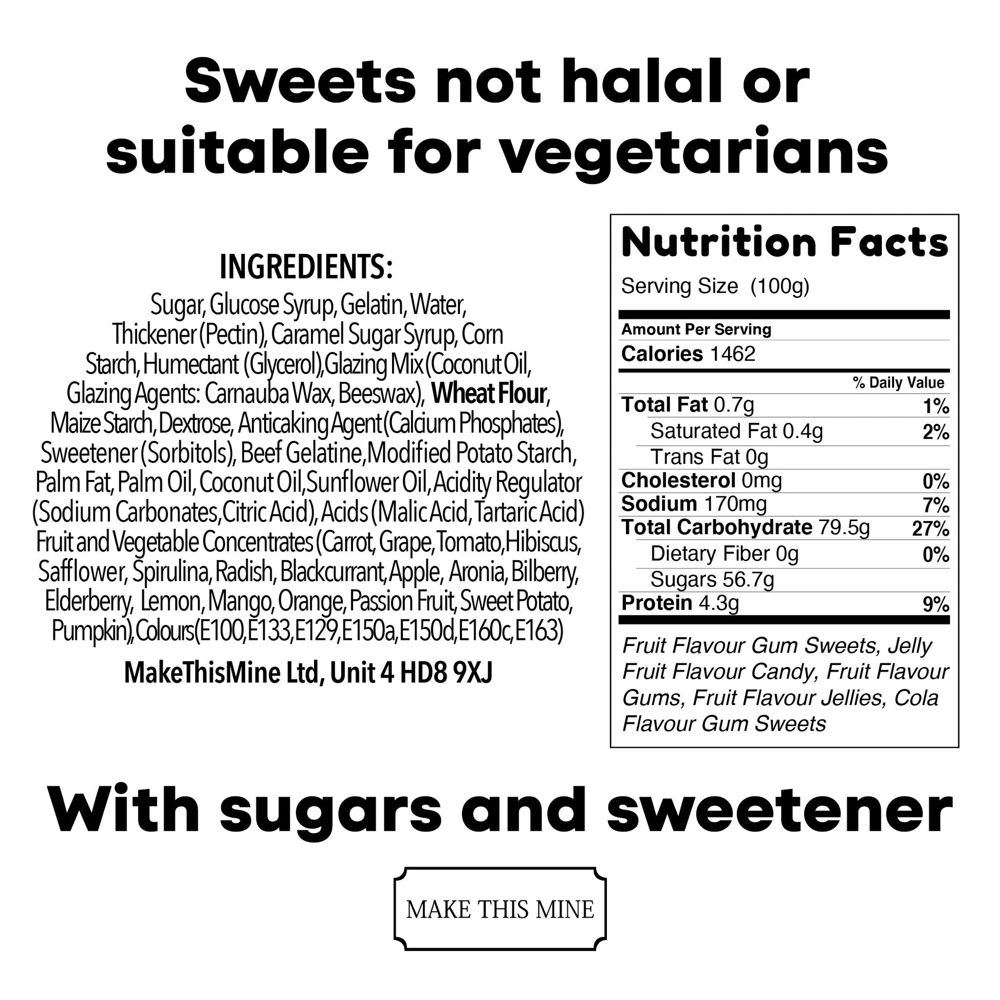 SWEETS NOT HALAL OR SUITABLE FOR VEGETARIANS