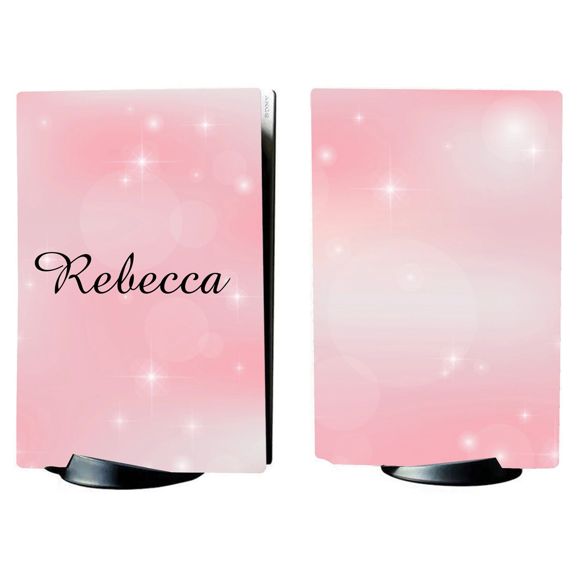 Playstation 5 Skin, Pink Sparkle sticker design on vinyl.