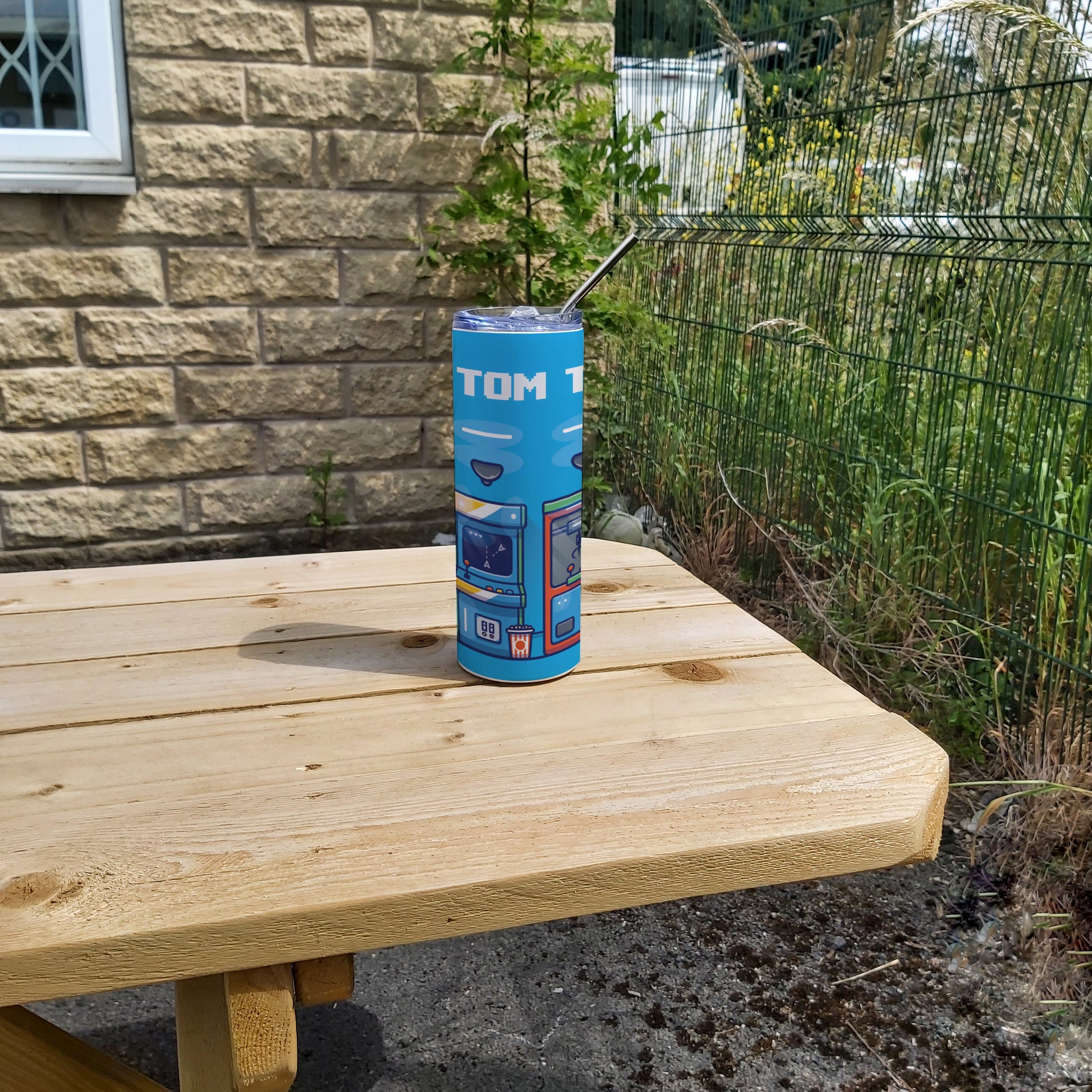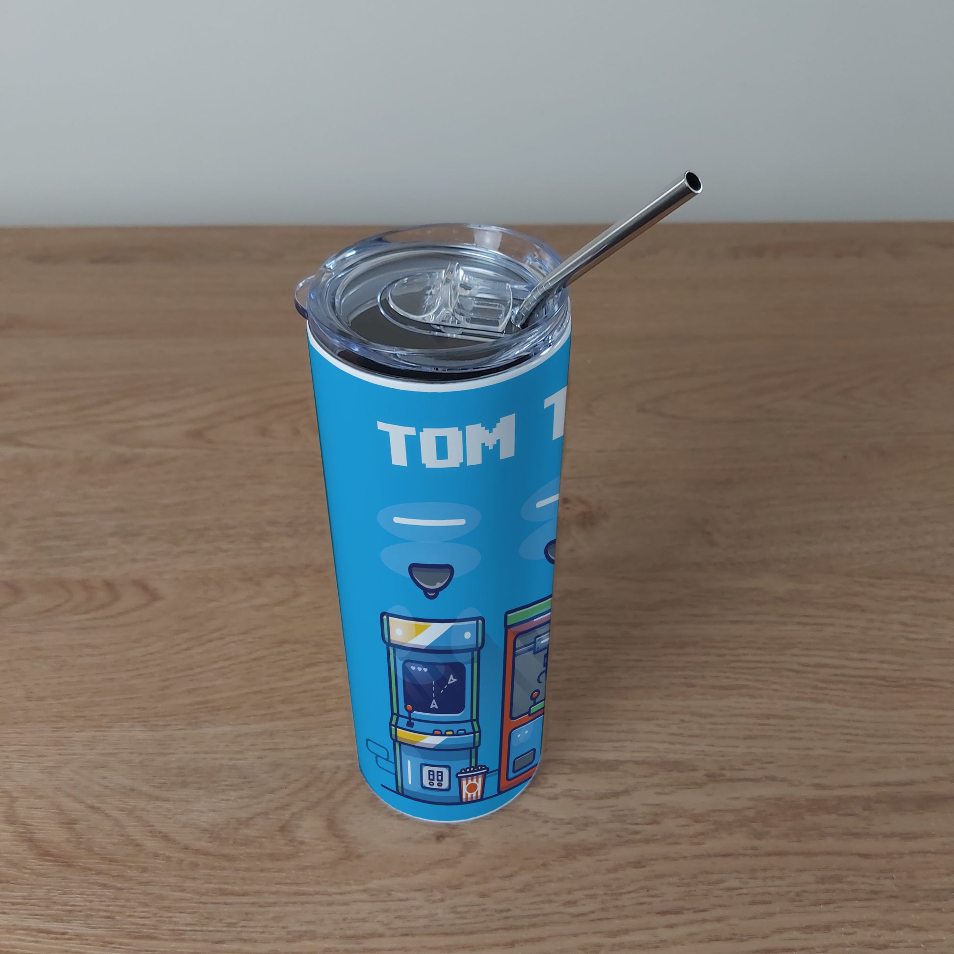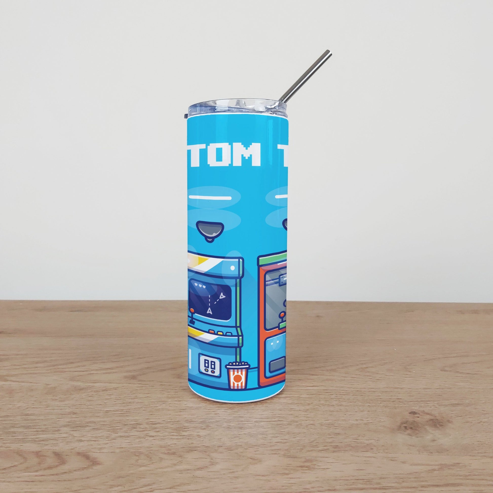 Personalised Stainless Steel Skinny Tumbler & Straw with Gaming Arcade Design