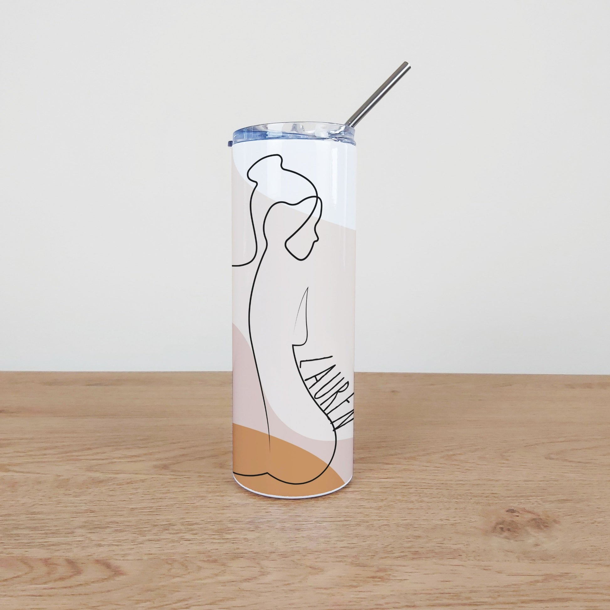 Personalised Stainless Steel Skinny Tumbler & Straw with Abstract Single Line Body Design