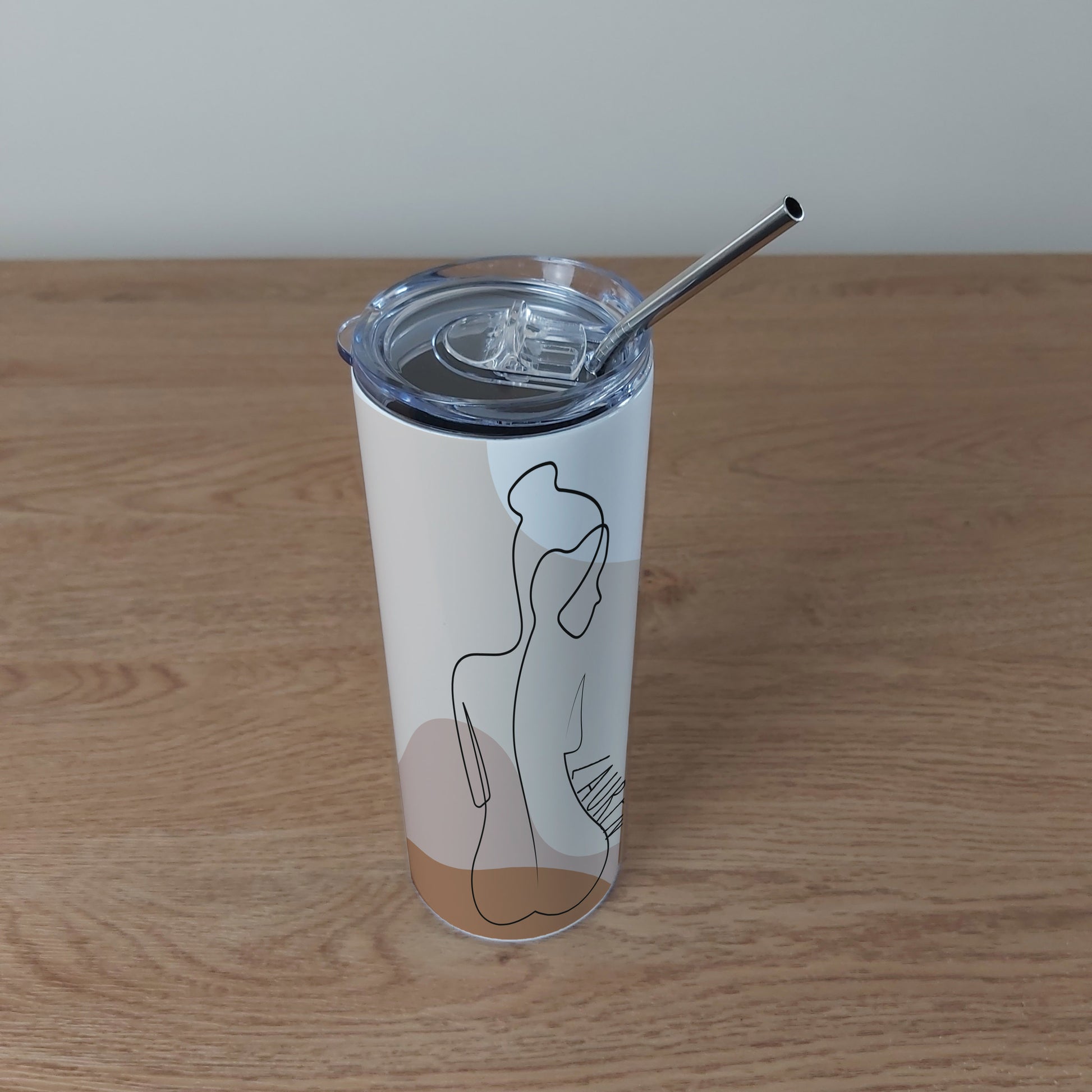 Abstract single line body design on a stainless steel tumbler, comes with eco-friendly stainless steel straw.