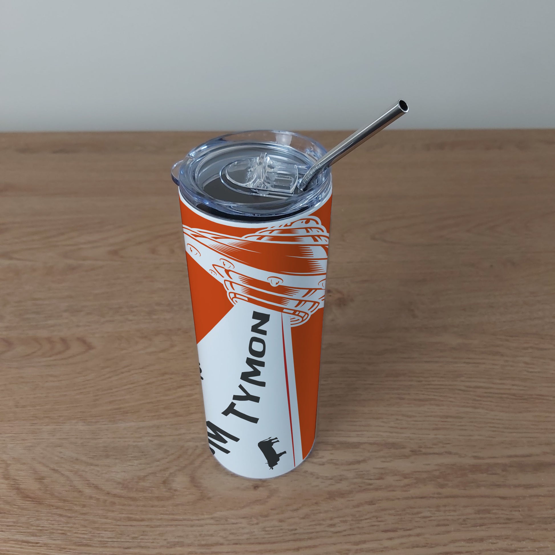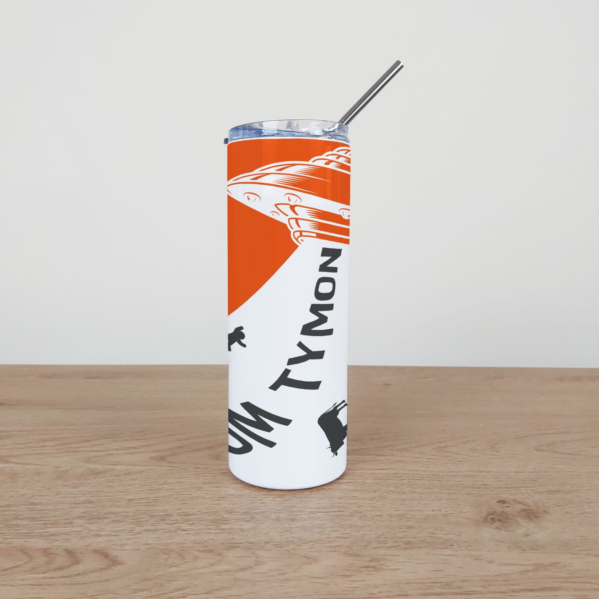 Personalised Stainless Steel Skinny Tumbler & Straw with Alien UFO Design