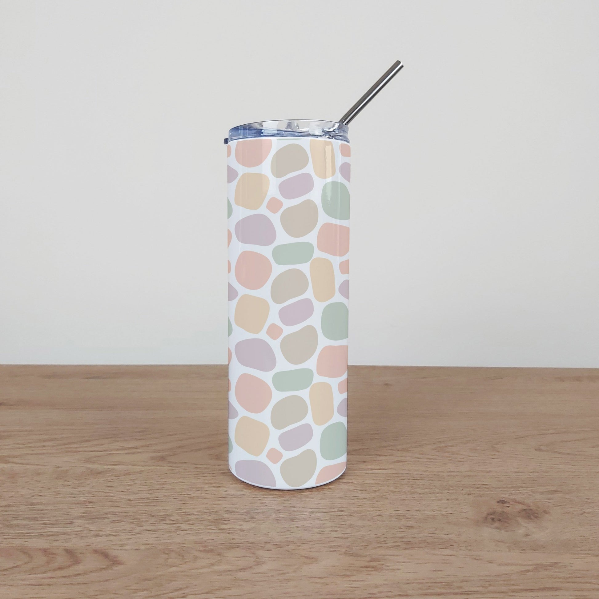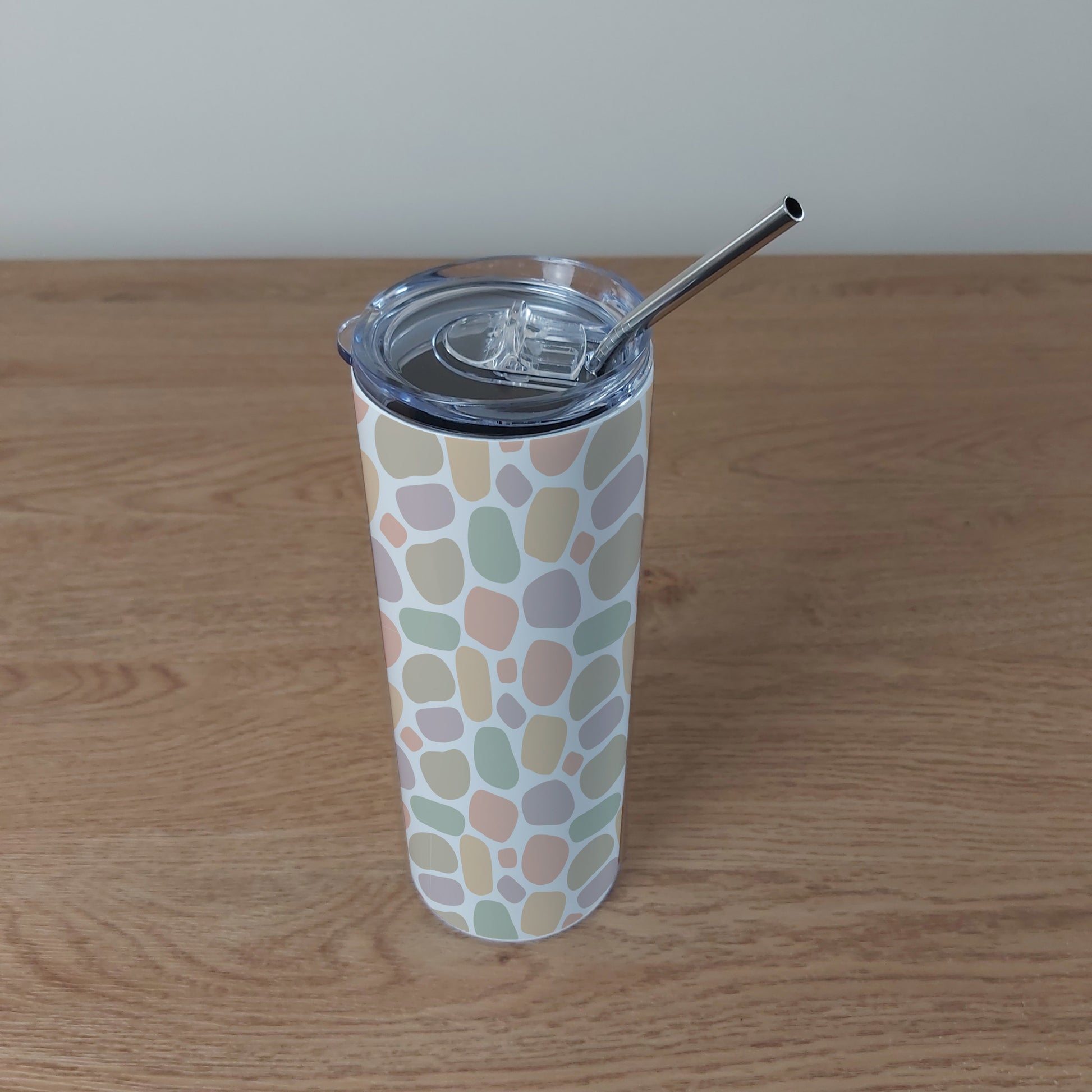 Stainless Steel Skinny Tumbler & Straw with Cobbled Pastel Colour Design