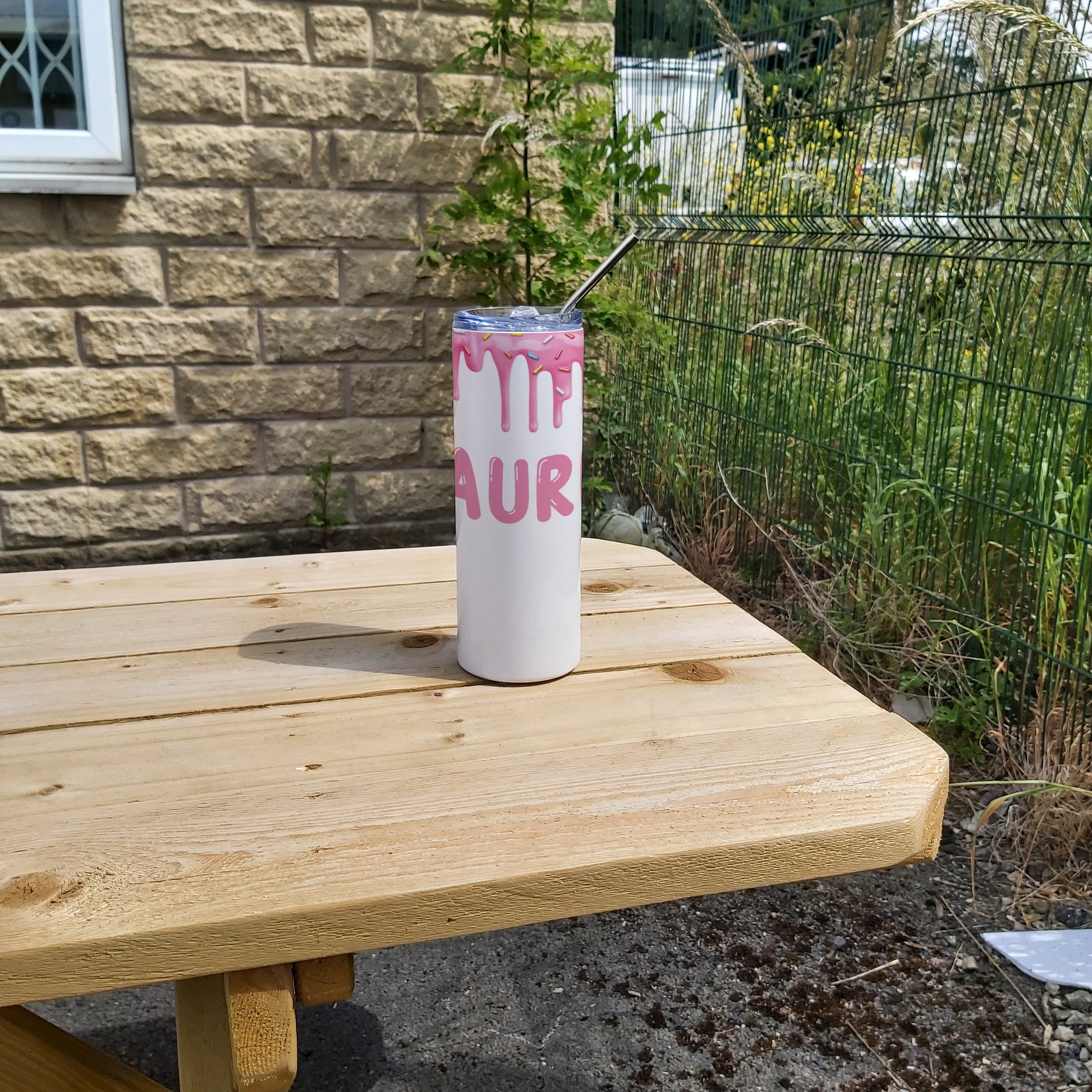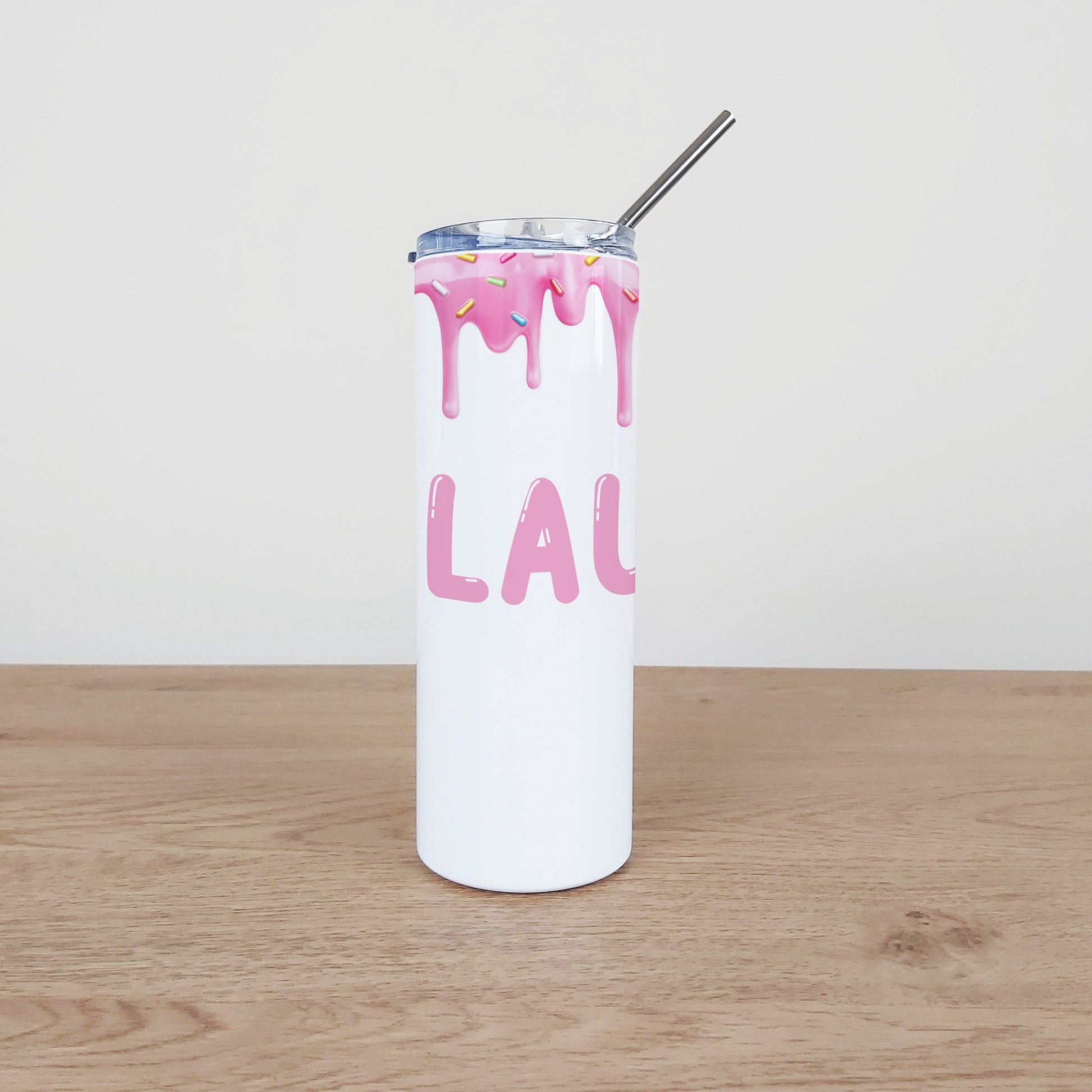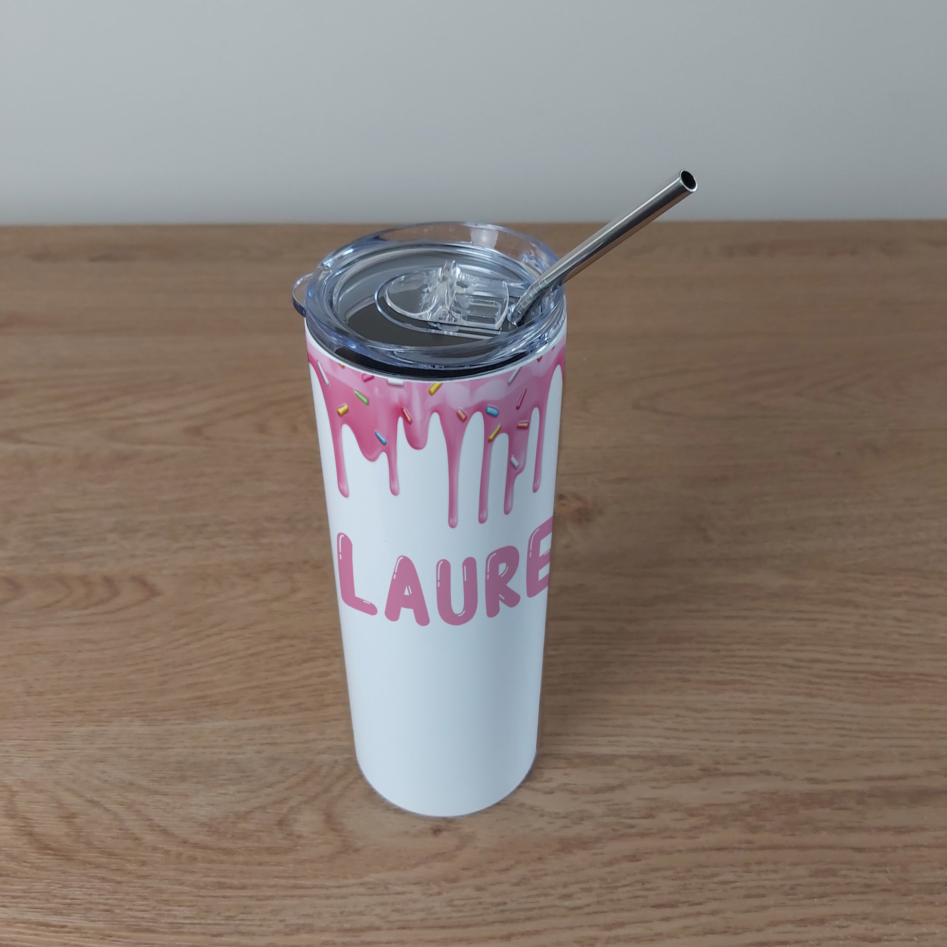 Personalised Stainless Steel Skinny Tumbler & Straw with Donut Icing Design