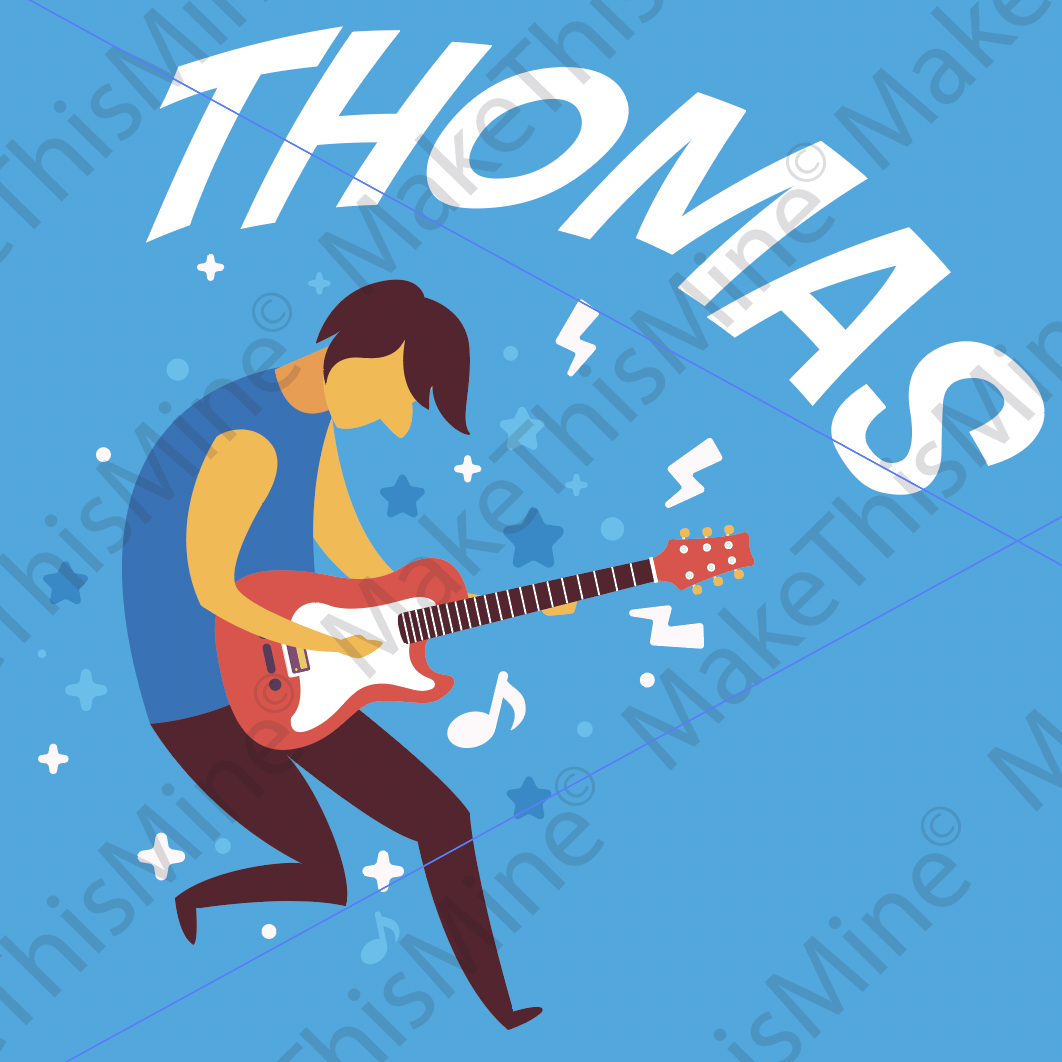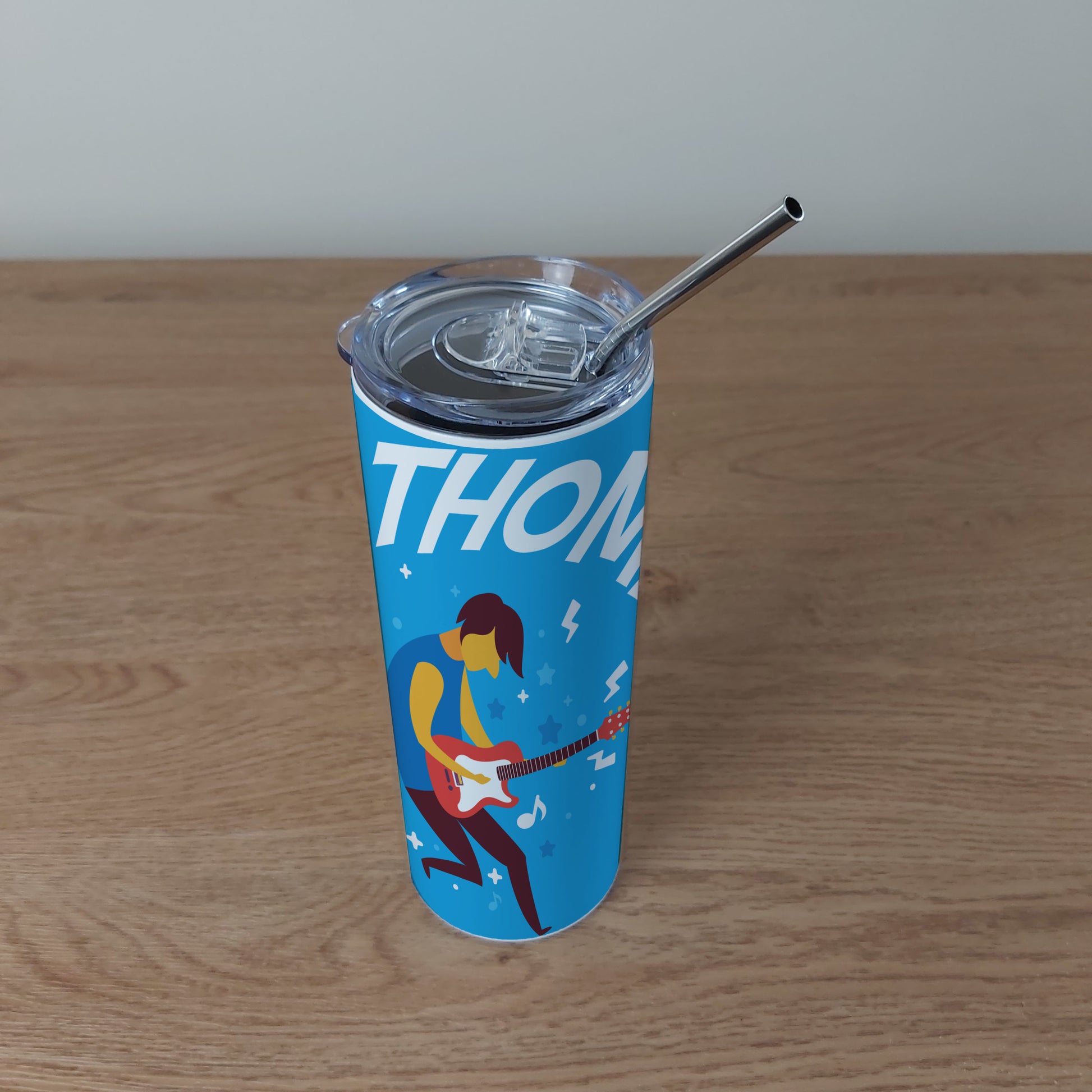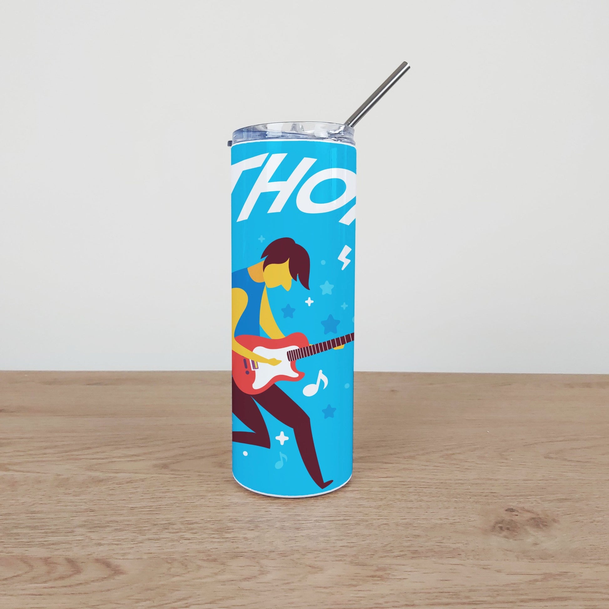 Personalised Stainless Steel Skinny Tumbler & Straw with Electric Guitar Design