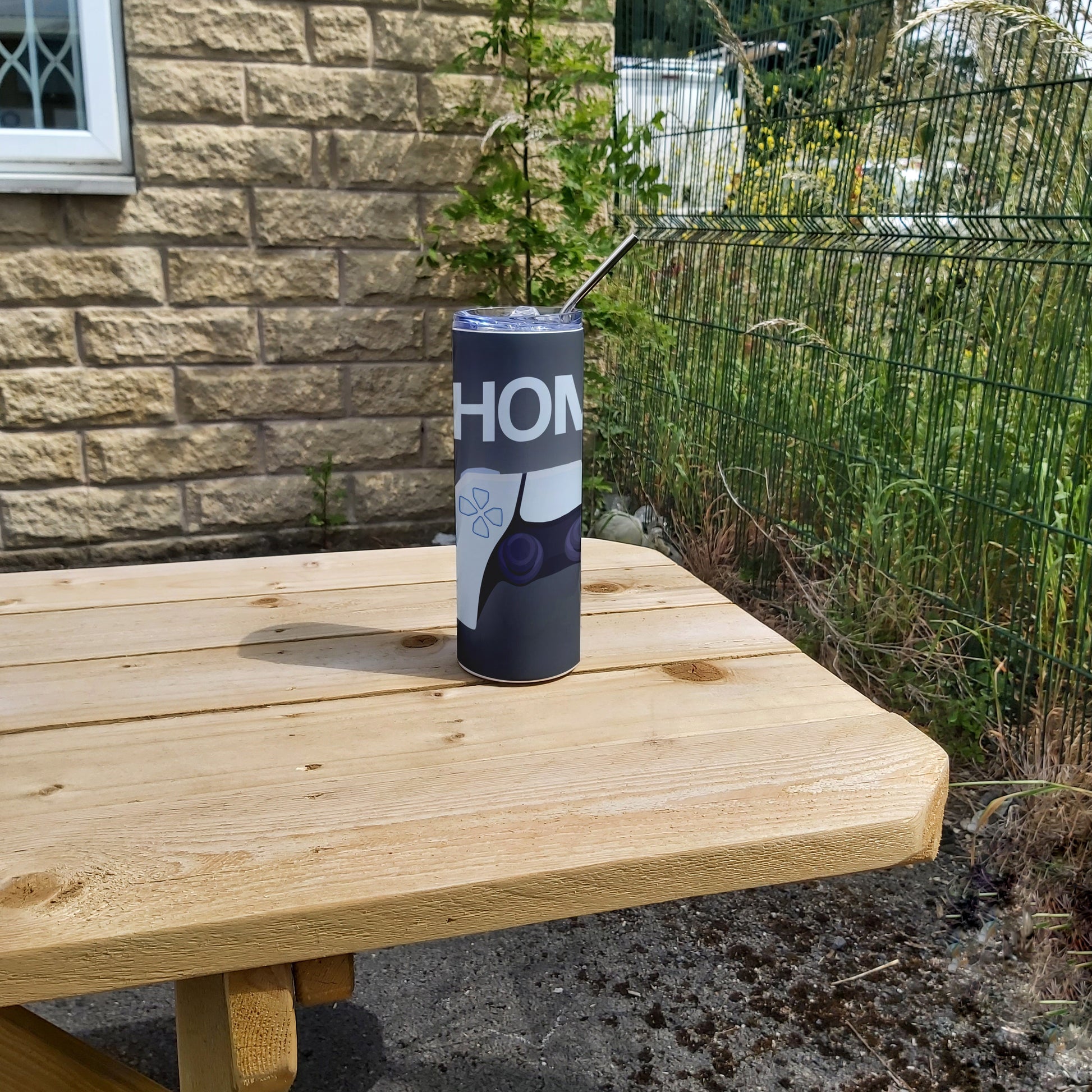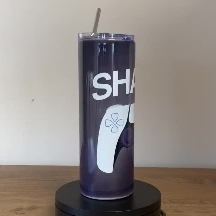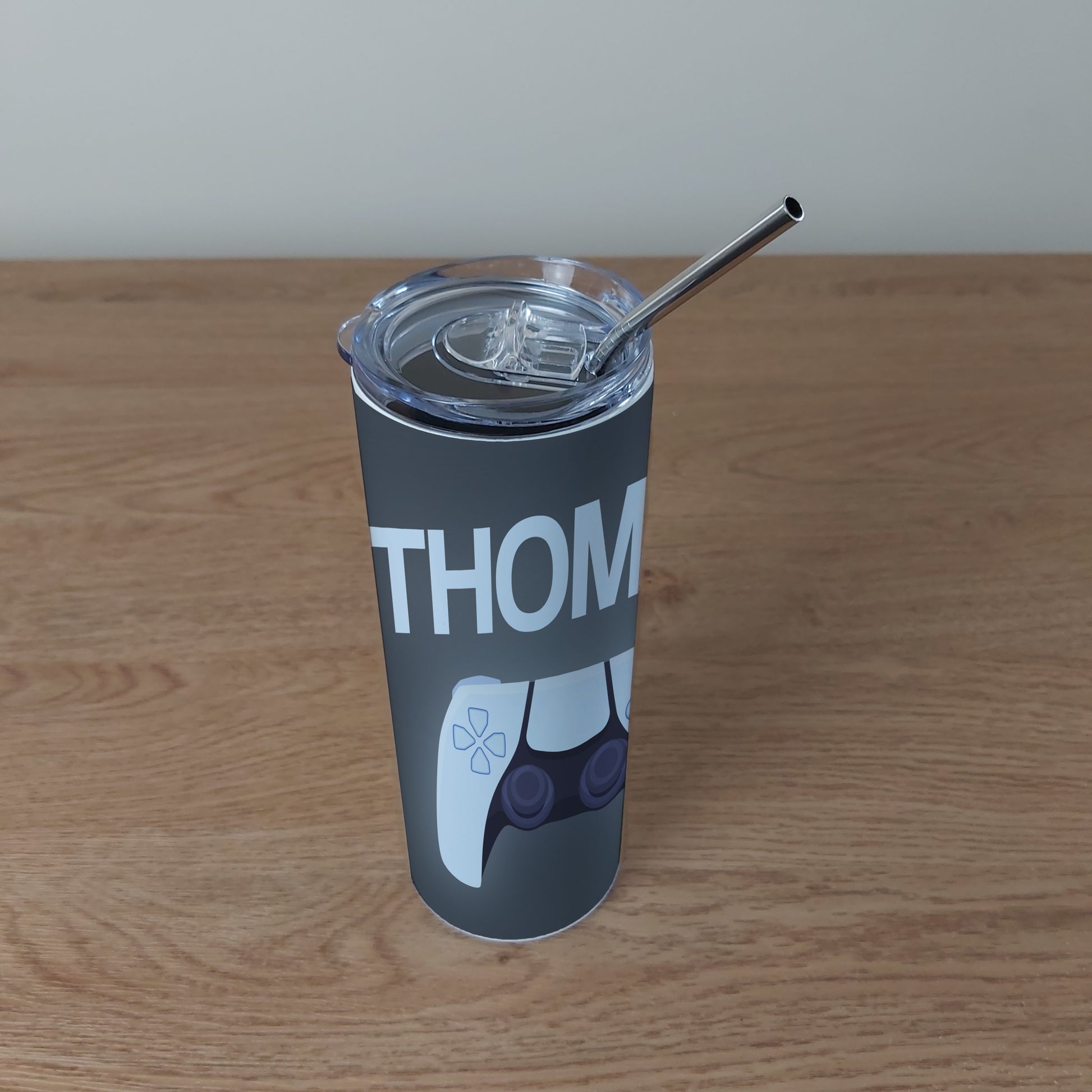 Personalised Stainless Steel Skinny Tumbler & Straw with Gaming Controller Design