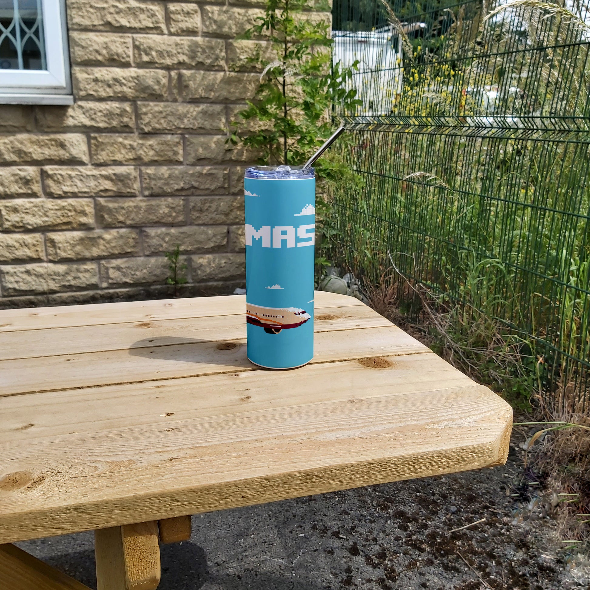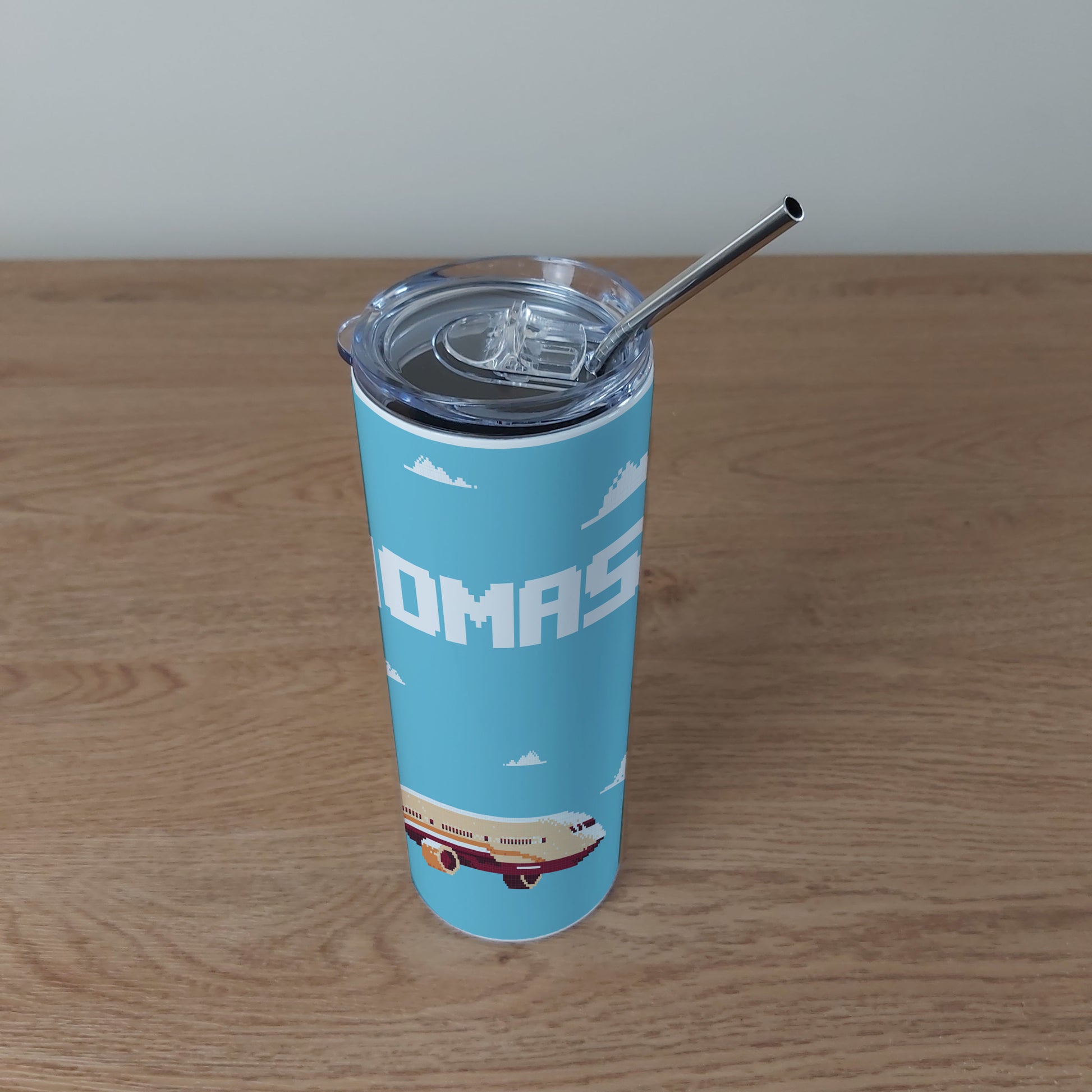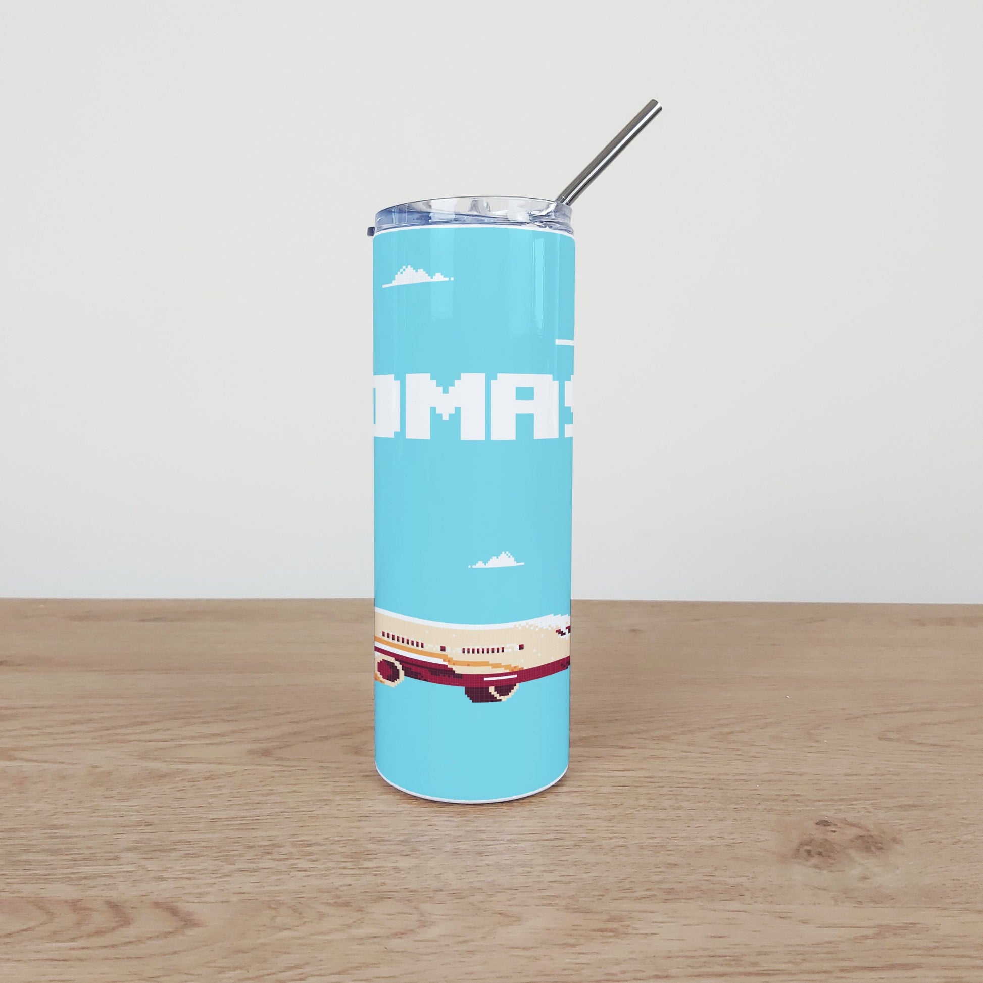 Personalised Stainless Steel Skinny Tumbler & Straw with Pixel Plane Design