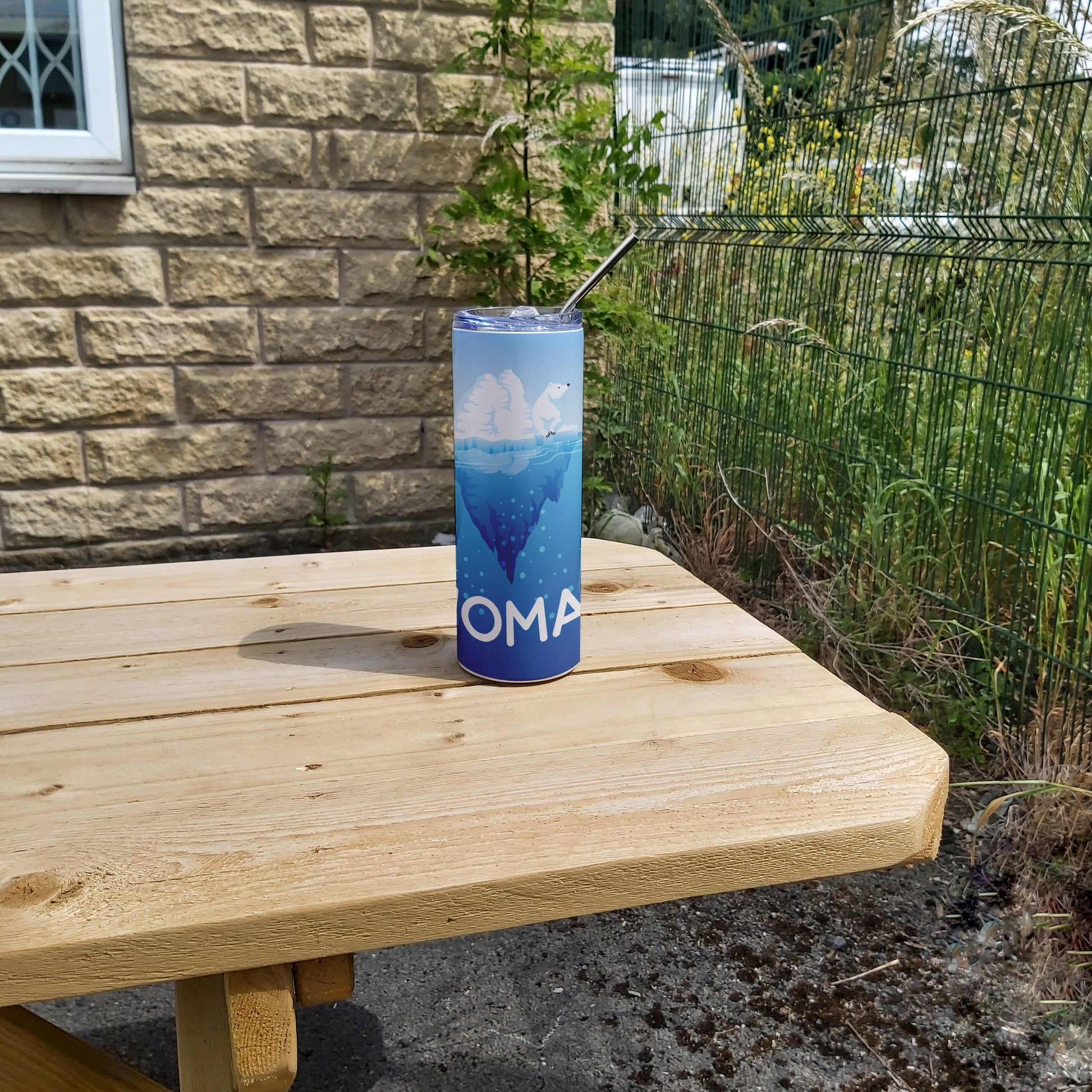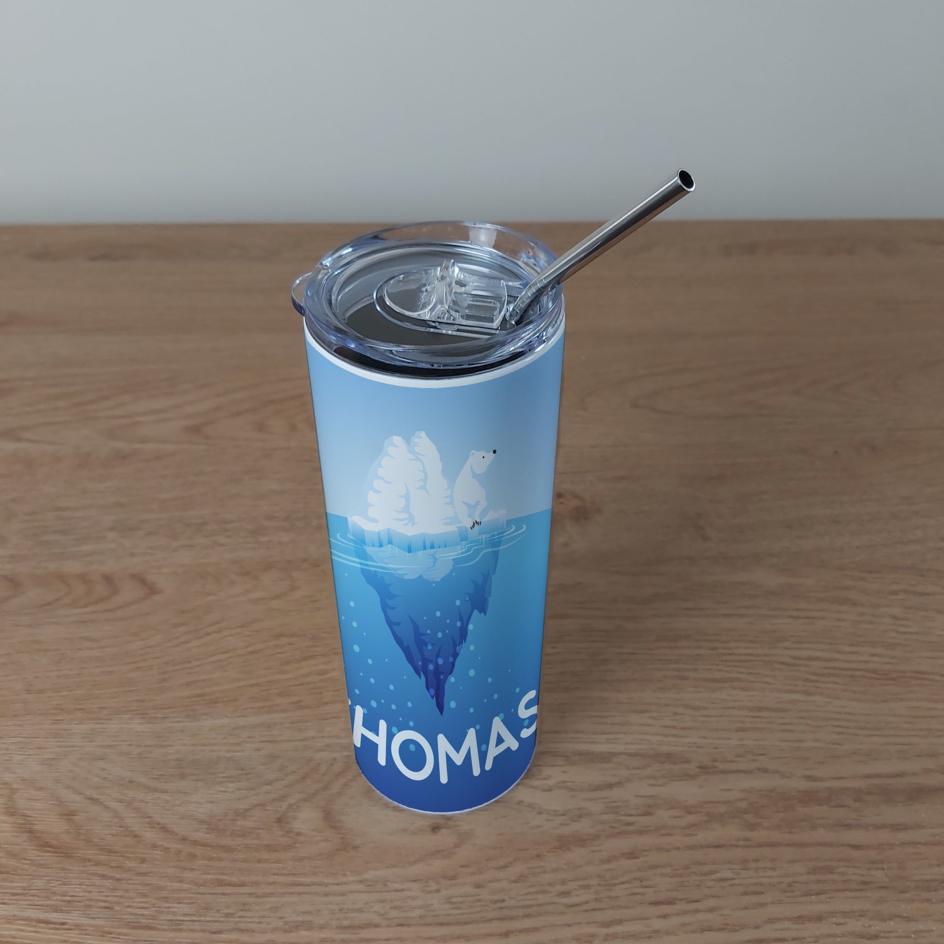 Personalised Stainless Steel Skinny Tumbler & Straw with Polar Bear Iceberg Design