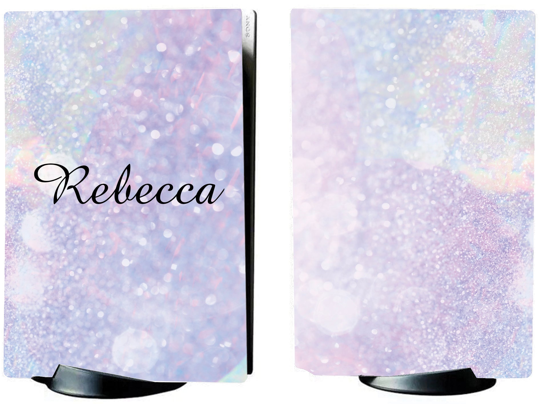 Playstation 5 Skin, Purple Sparkle sticker design on vinyl.