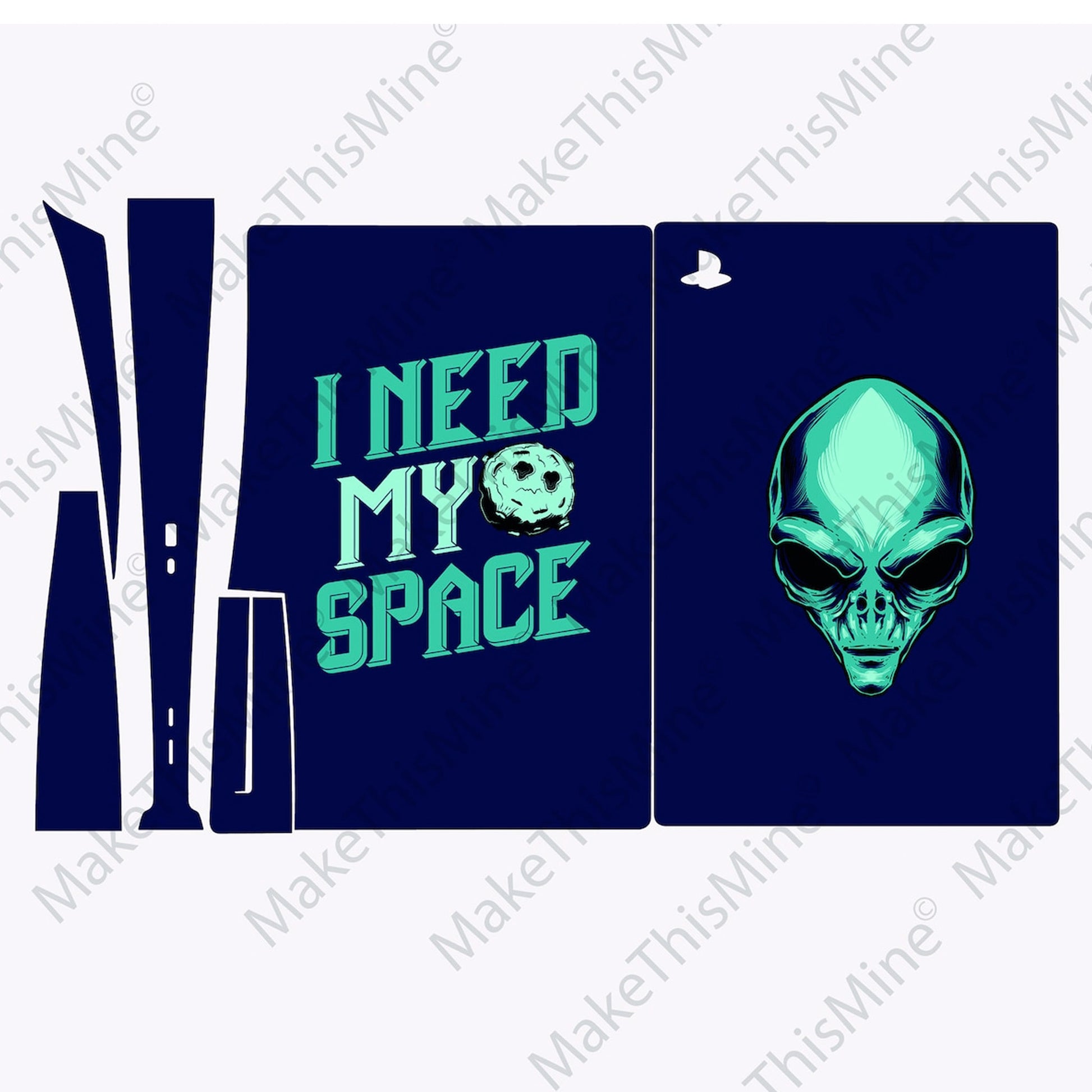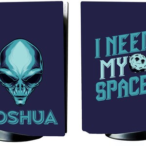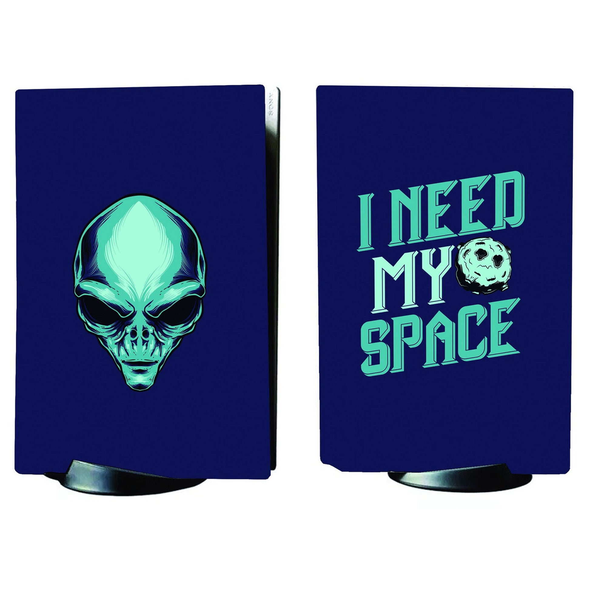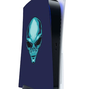 Playstation 5 Skin, Blue Alien sticker design on vinyl.