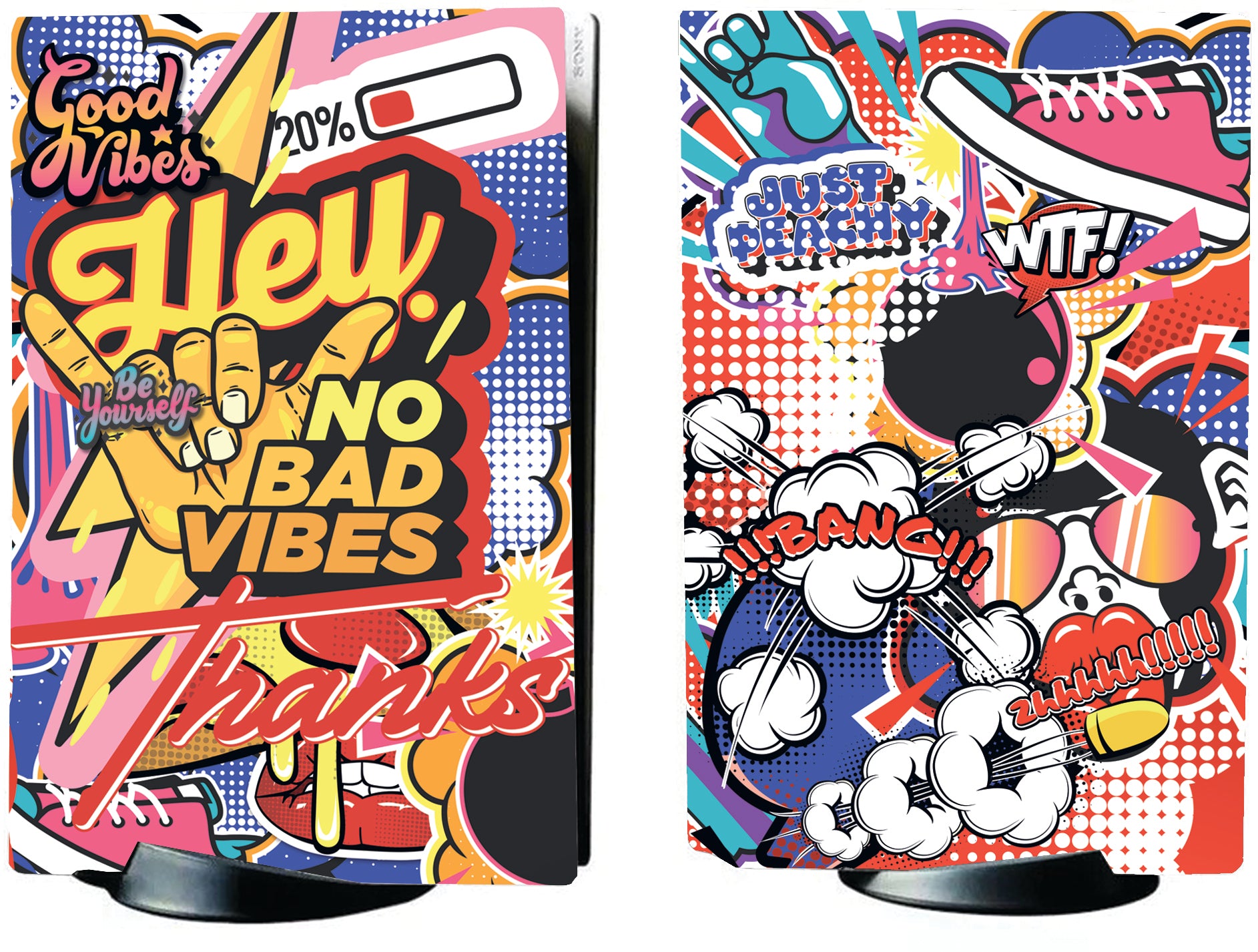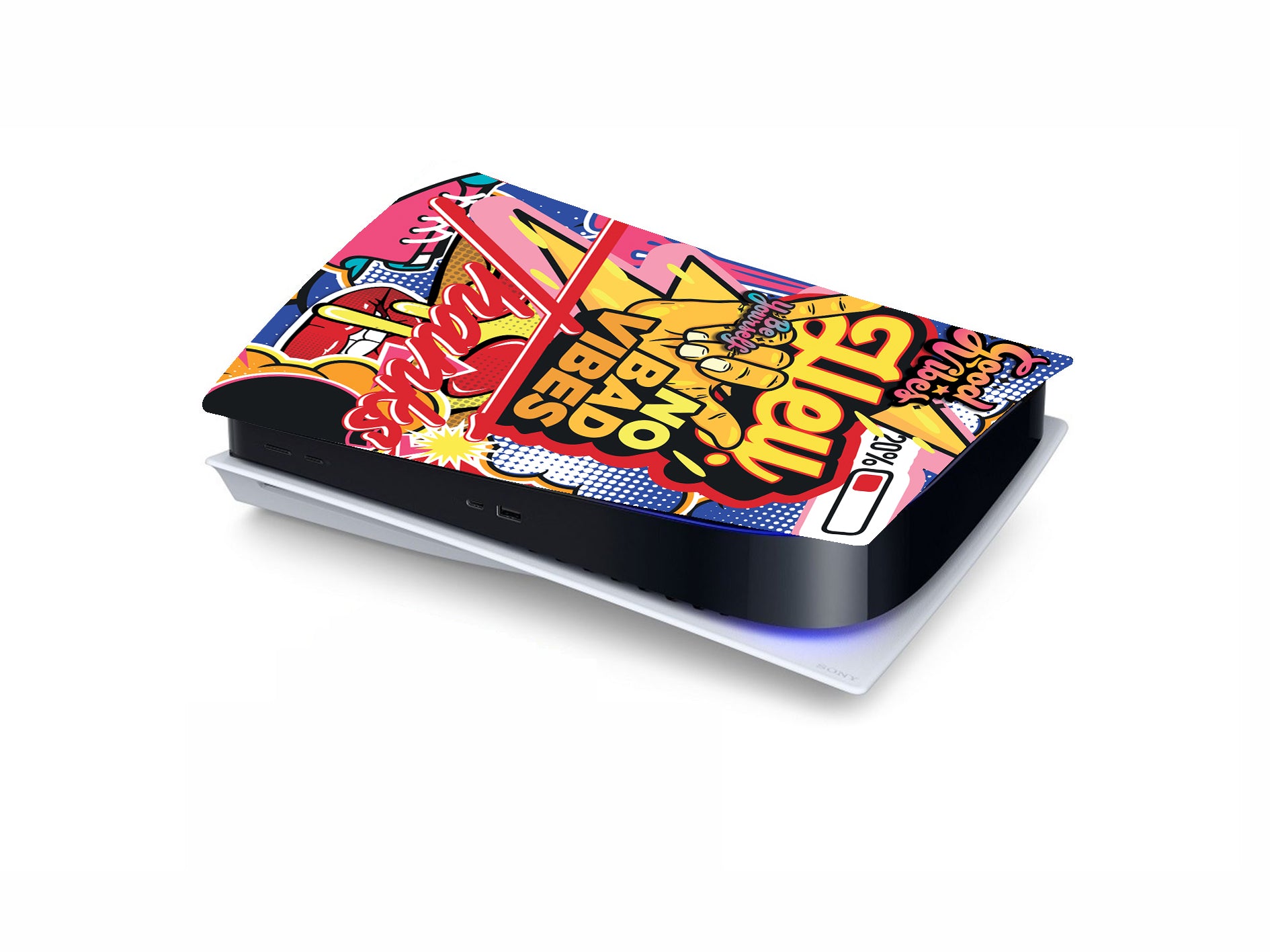 Playstation 5 Skin, Sticker-bomb sticker design on vinyl.