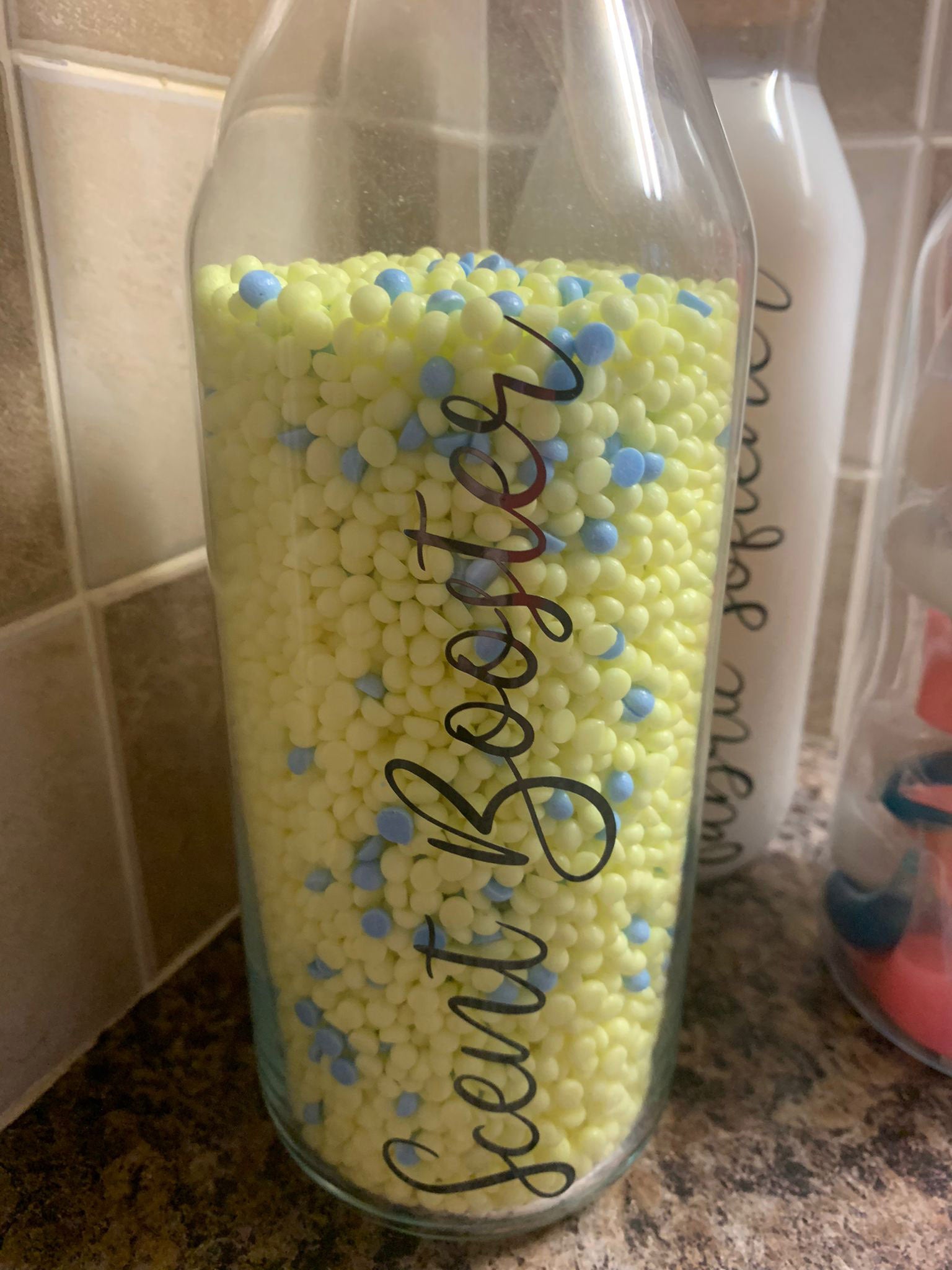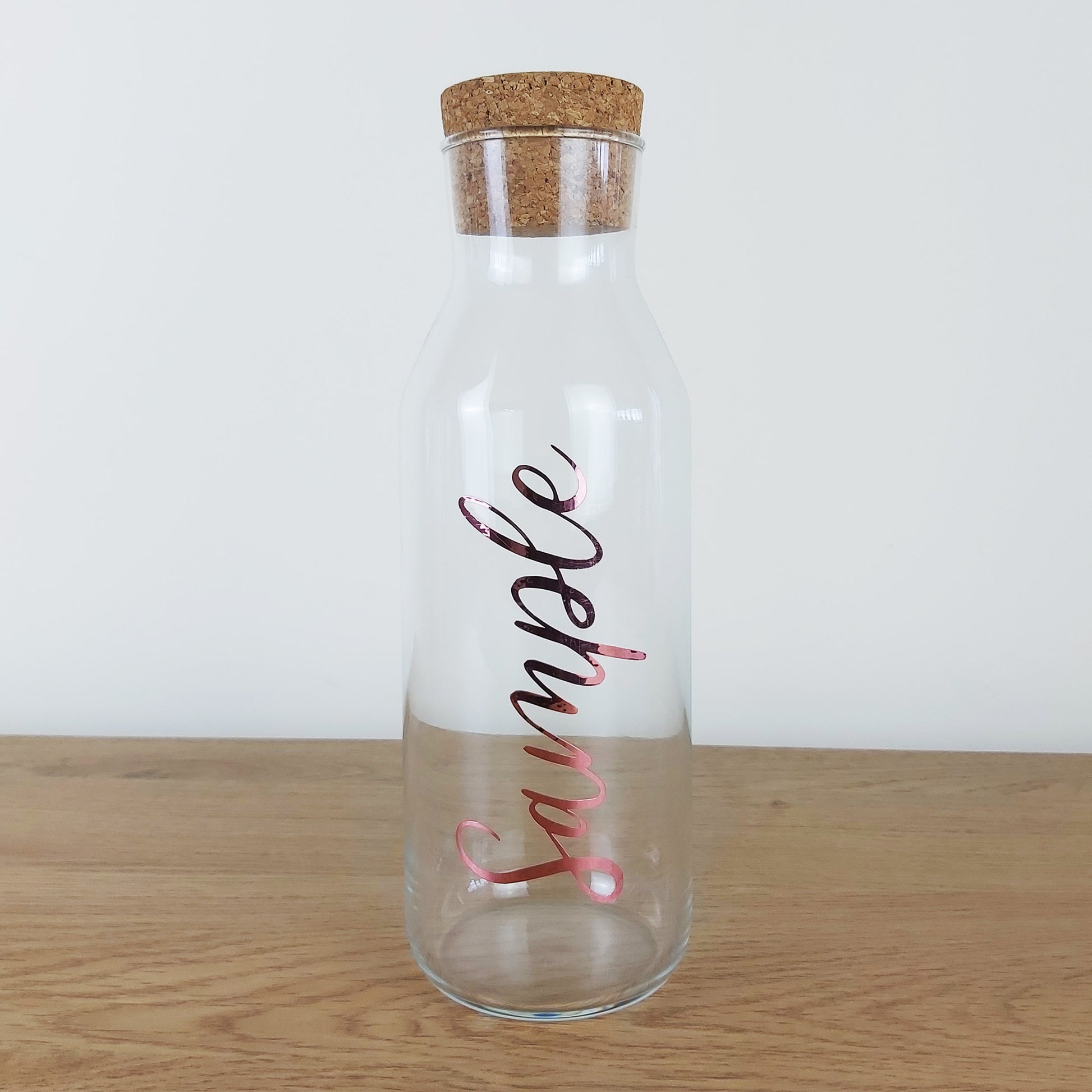 Store your scent boosters in this reusable eco-friendly glass jar with cork lid. Choose from the available vinyl text colour options to match the jar to your decor.