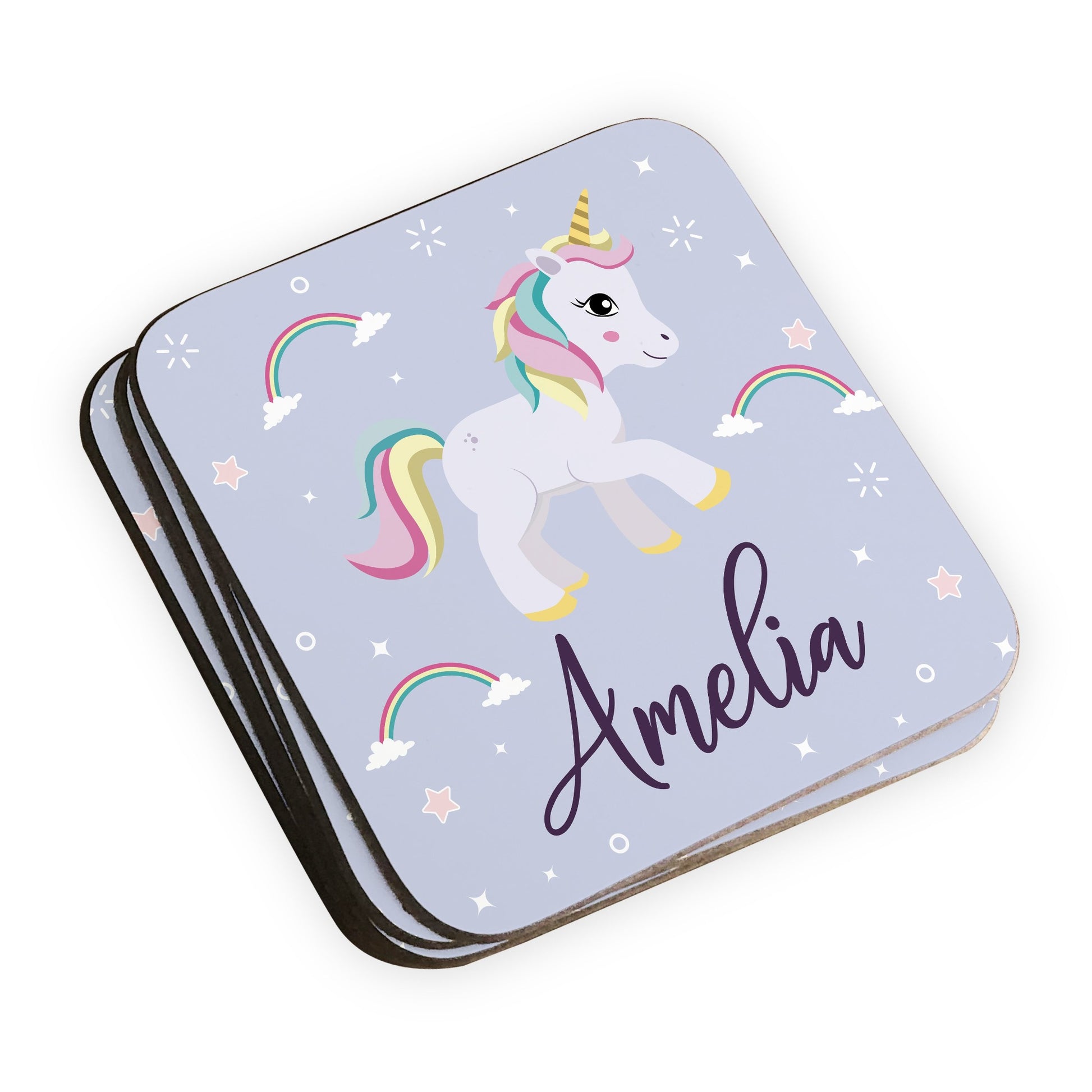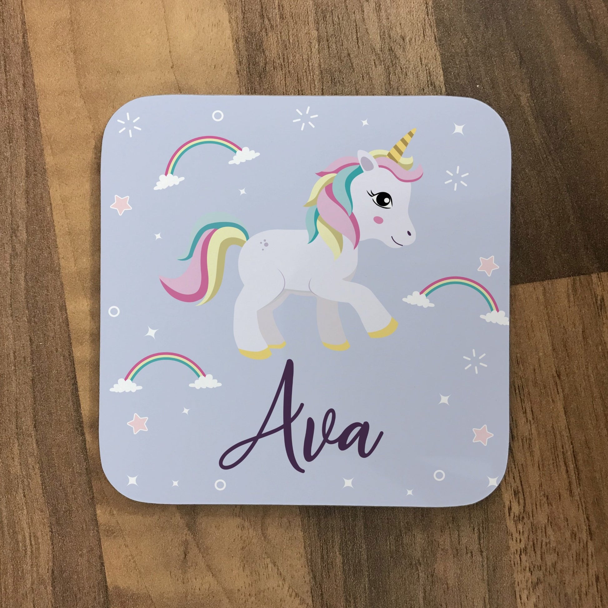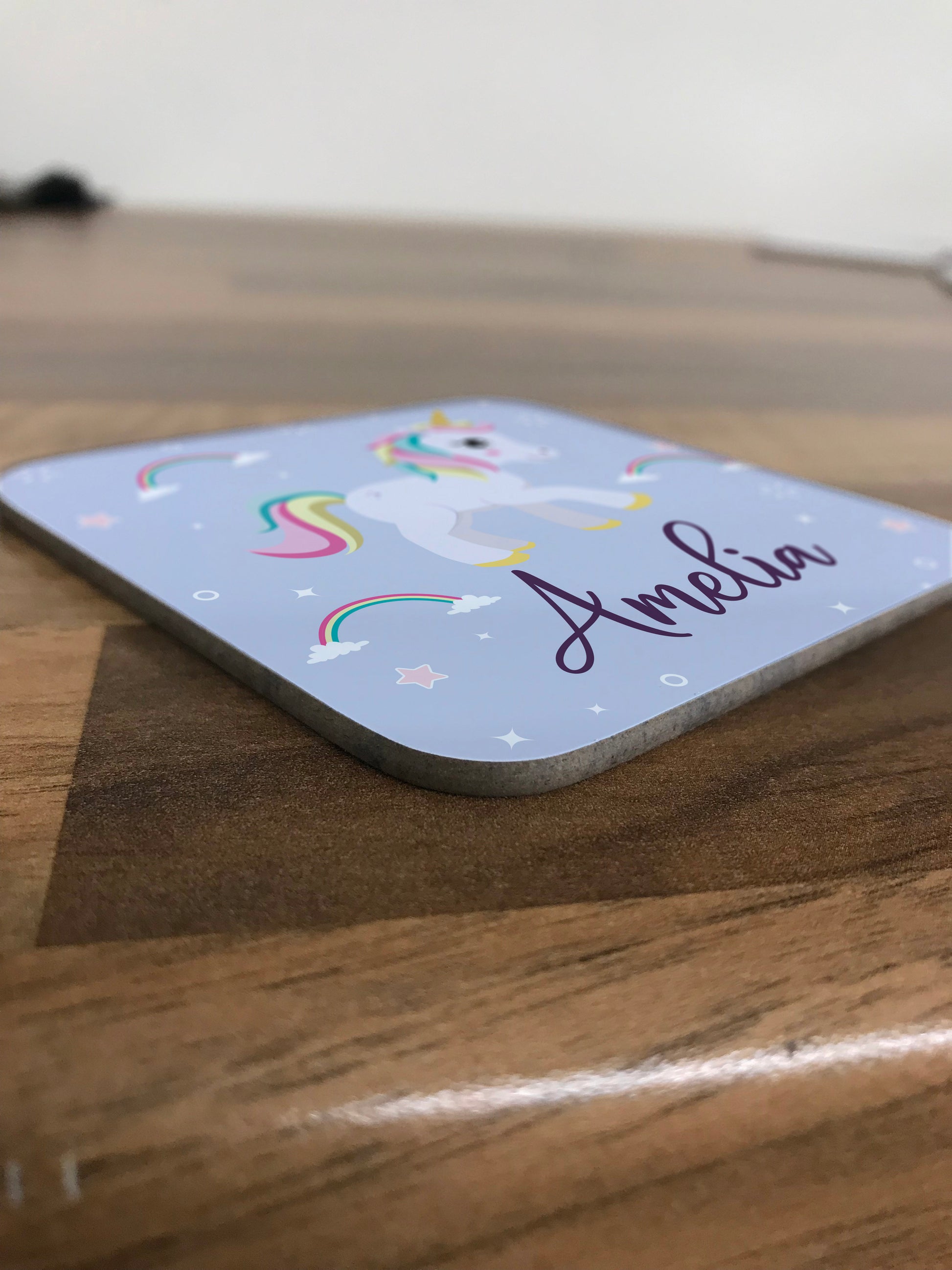 Fantastic colourful unicorn design. Our personalised unicorn coasters make excellent fun gifts ideal for family and friends.