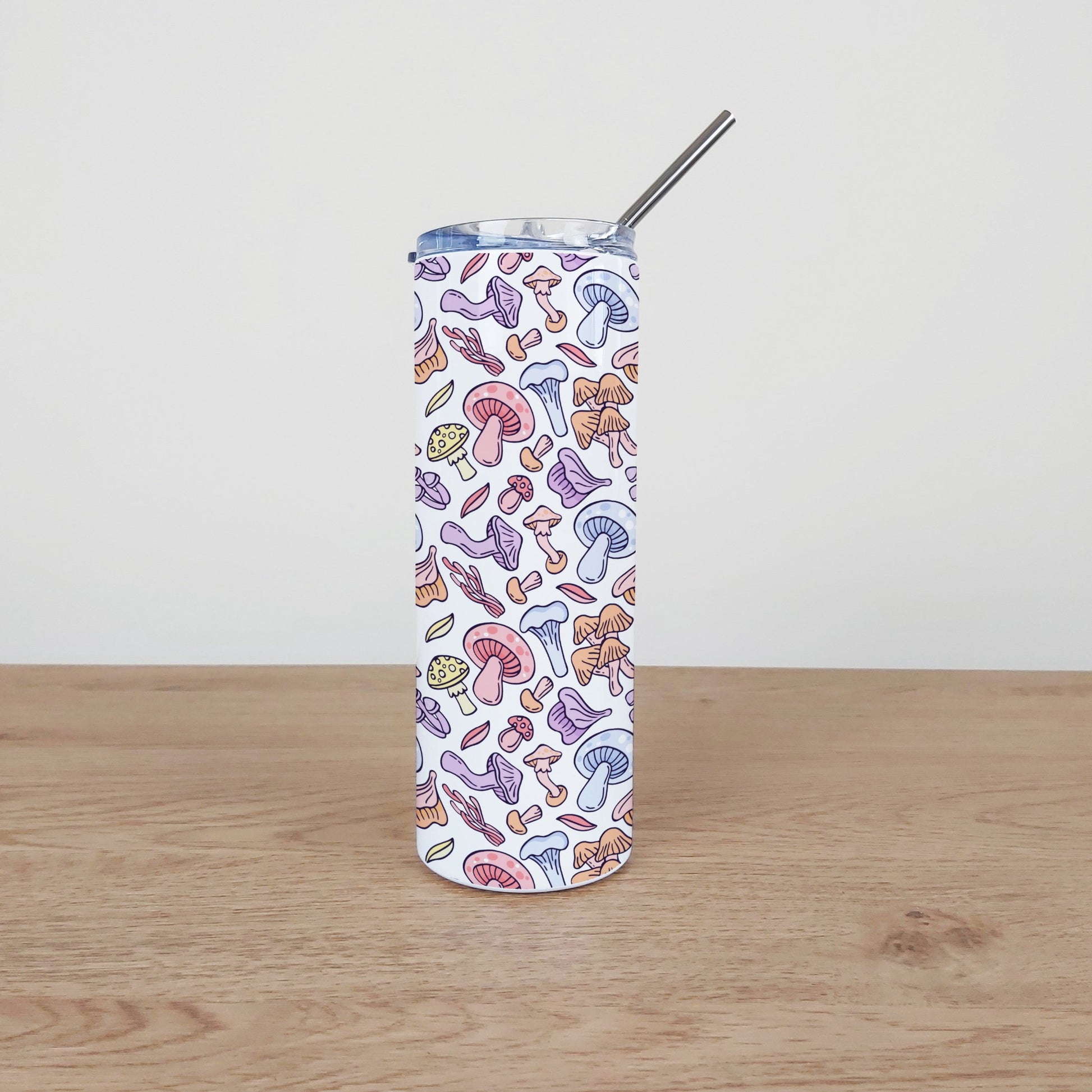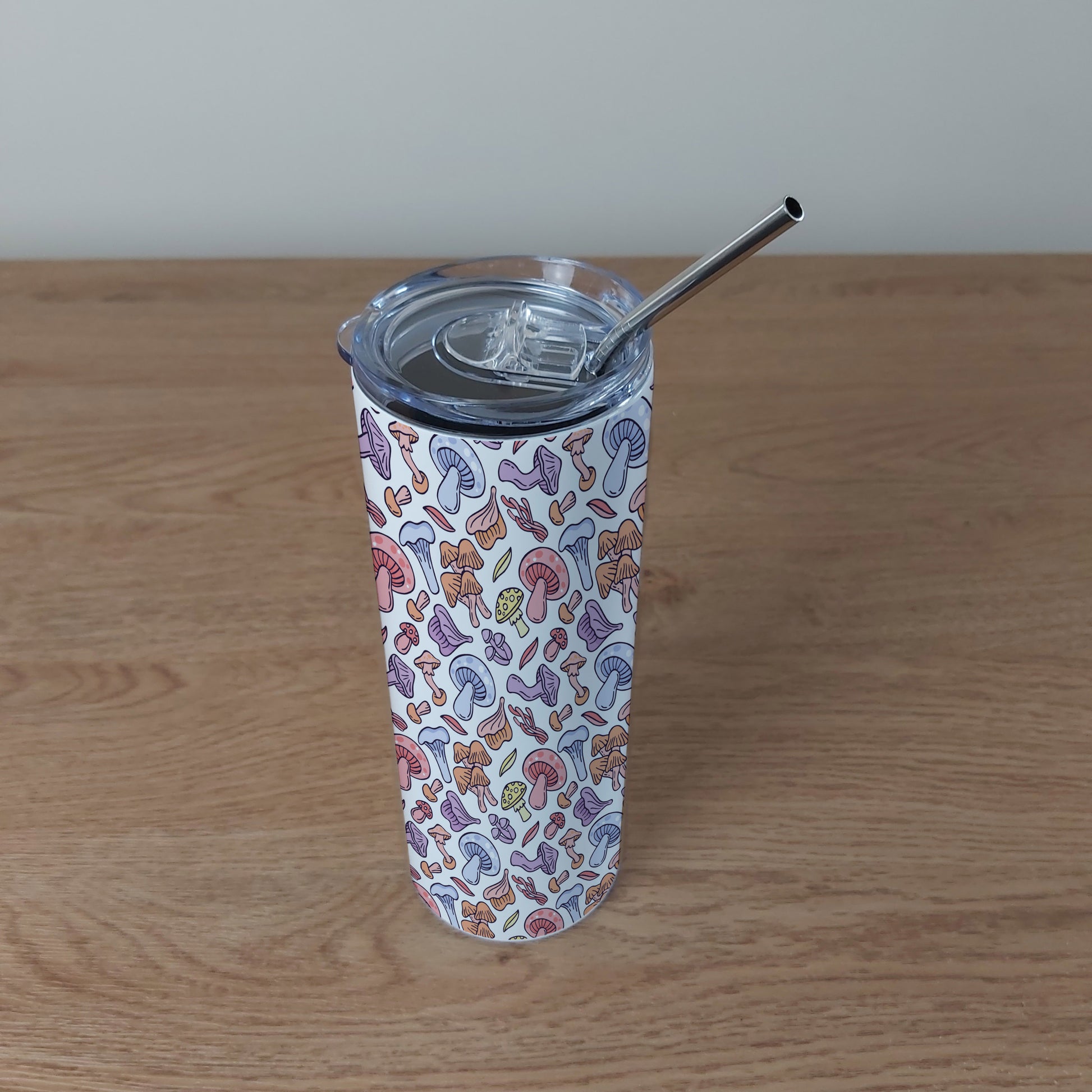 Stainless Steel Skinny Tumbler & Straw with Colourful Mushroom Pattern Design