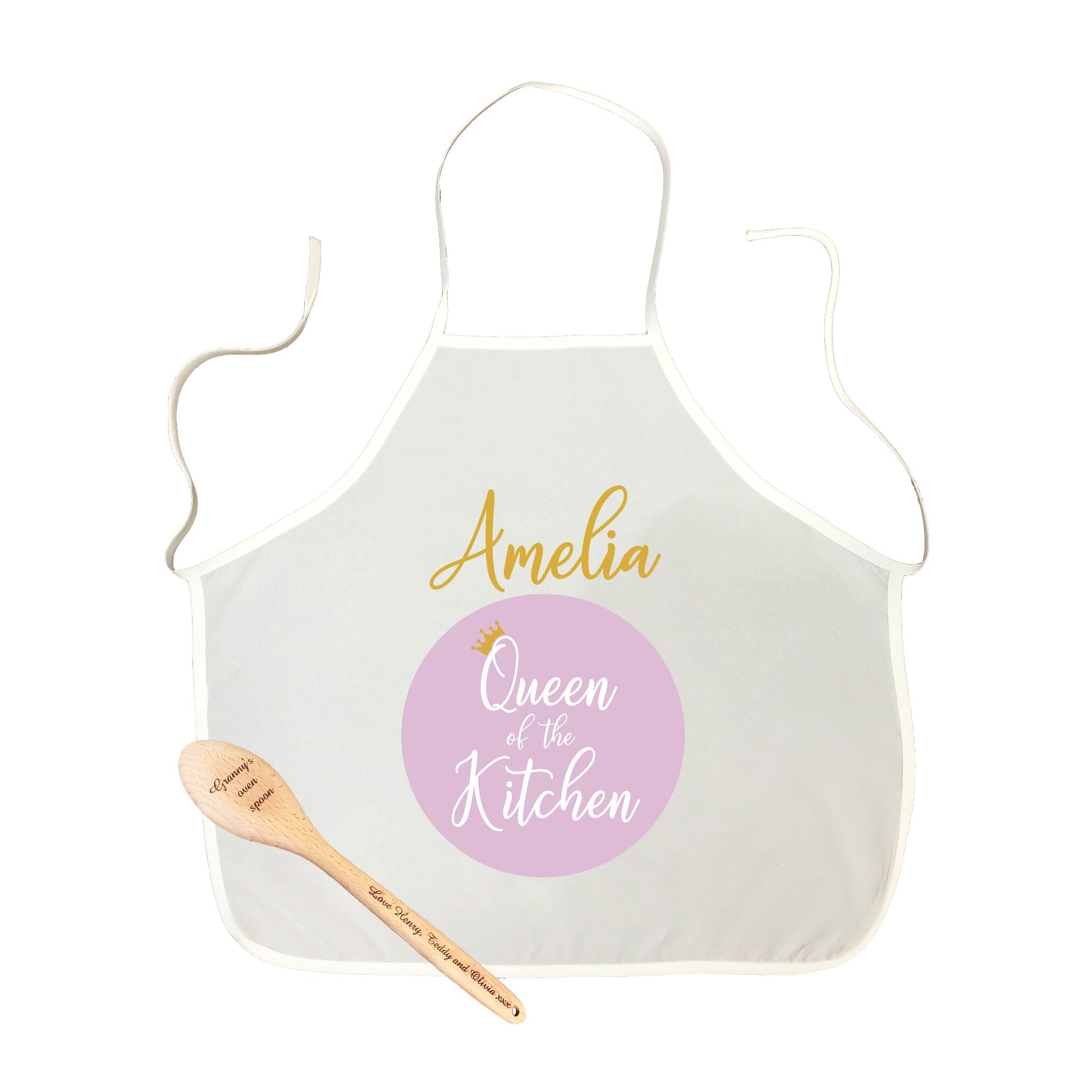 Our personalised apron and wooden spoon sets make perfect gifts for the budding baker!