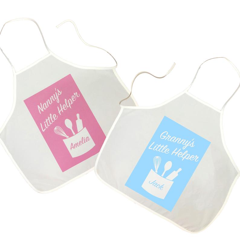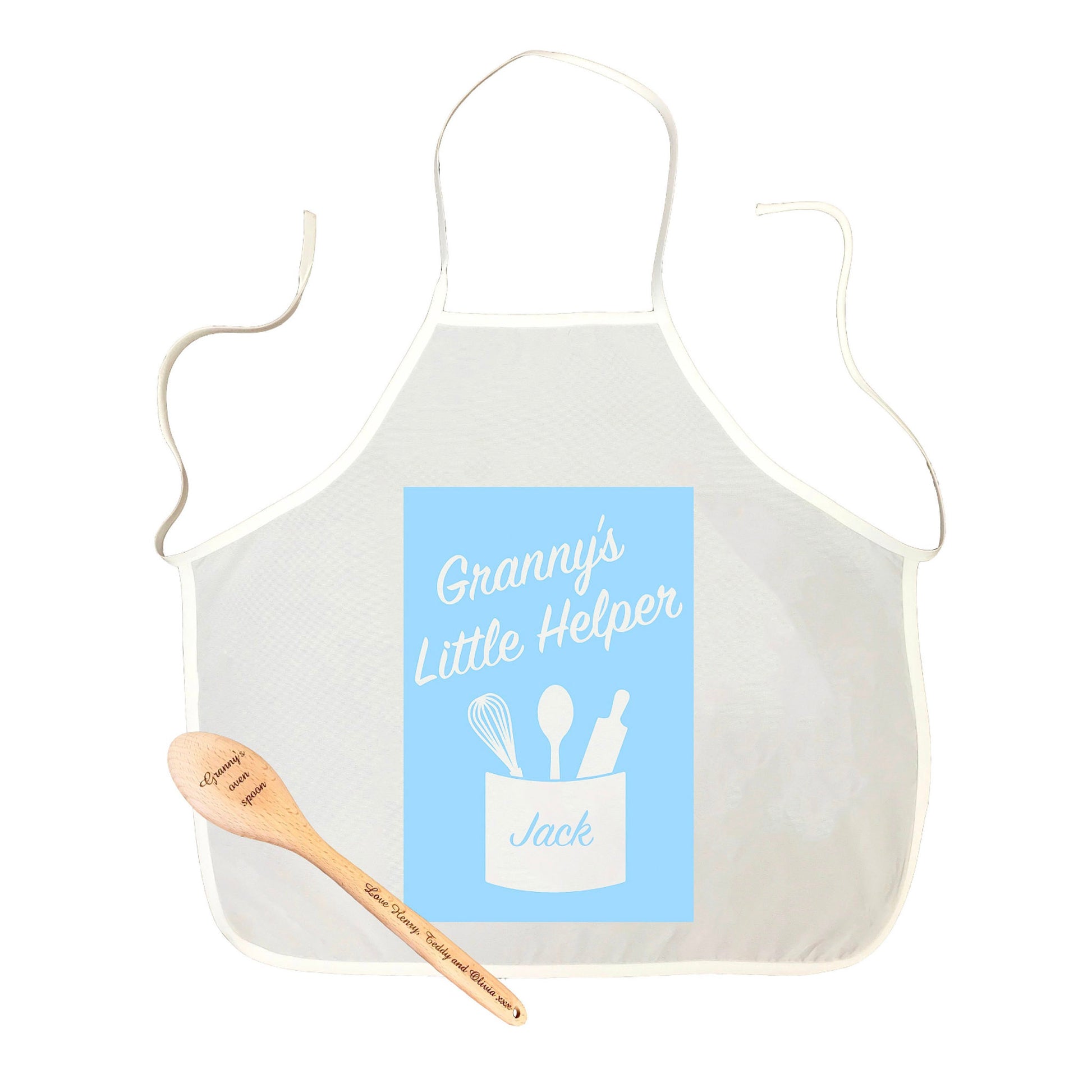 Our personalised apron and wooden spoon sets make perfect gifts for the budding baker!