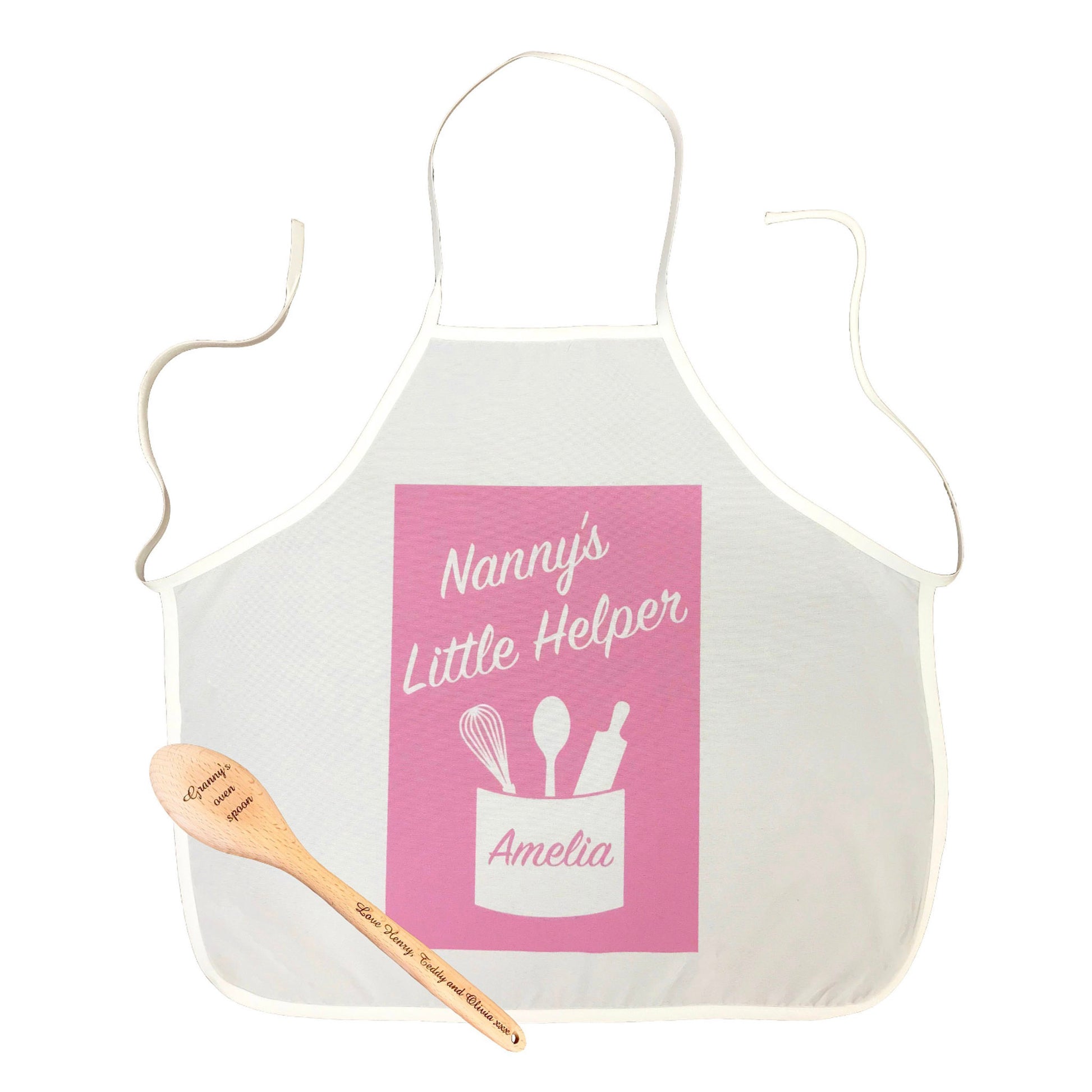 Our personalised apron and wooden spoon sets make perfect gifts for the budding baker!